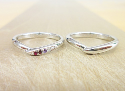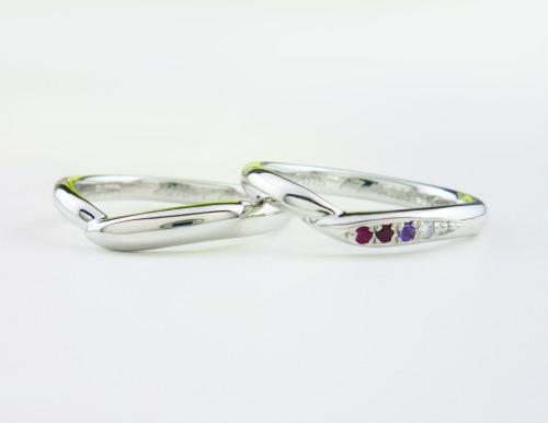 色鮮やかな誕生石を入れた手作り結婚指輪。