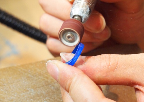 作業風景。この時点では全体的に角が残っていることが分かります。