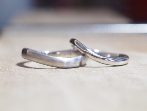 指輪を重ねると同じ形状で、同じウェーブの深さだということが分かります。