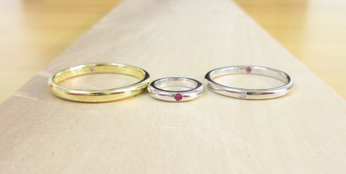 お子様のリング表面にはルビーを1石ドイツ留めで留めています。