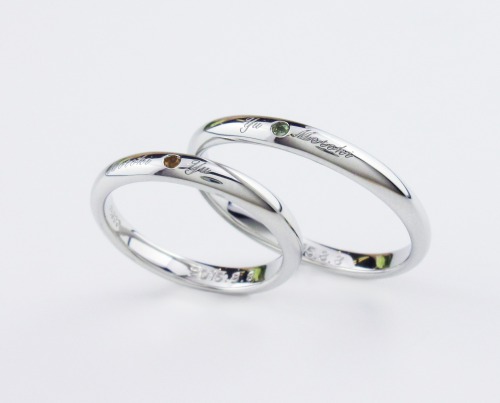 名前と名前の間にはお互いの誕生石を留めています。