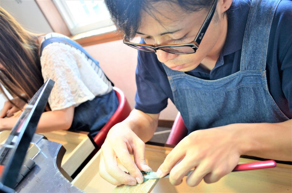 内文字も手作りにこだわって手彫で文字入れ。
