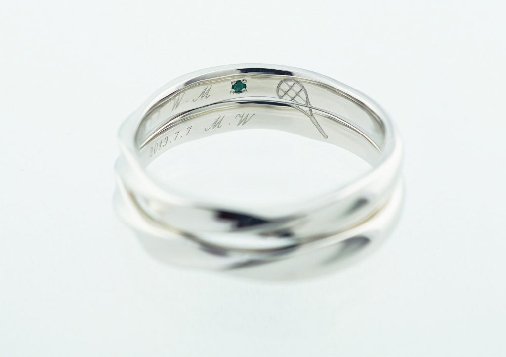 指輪の内側に出逢いのきっかけとなったテニスのモチーフを入れたことです!