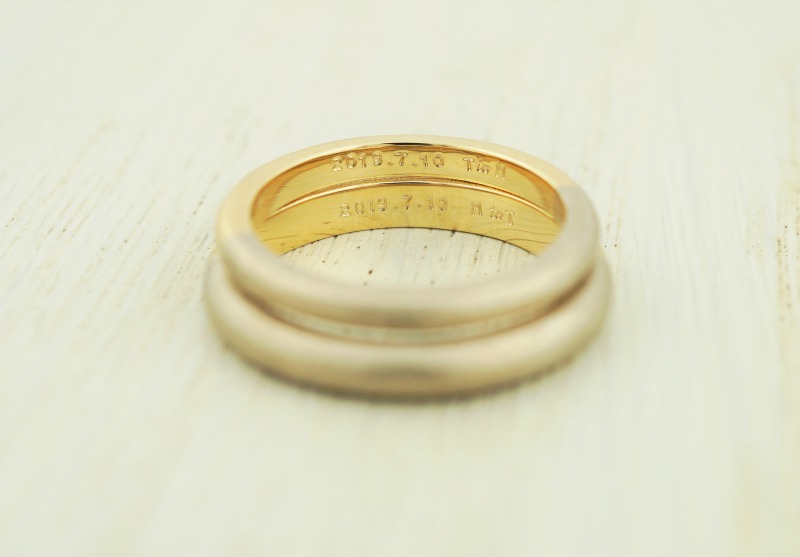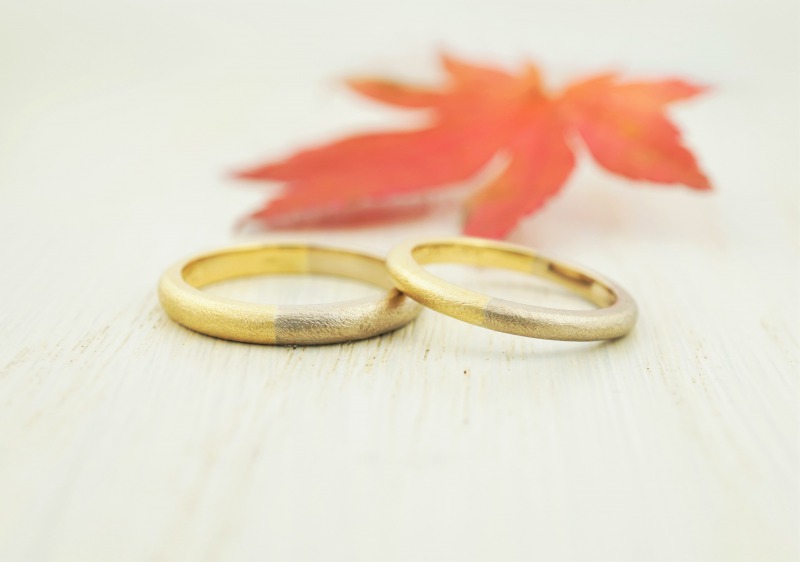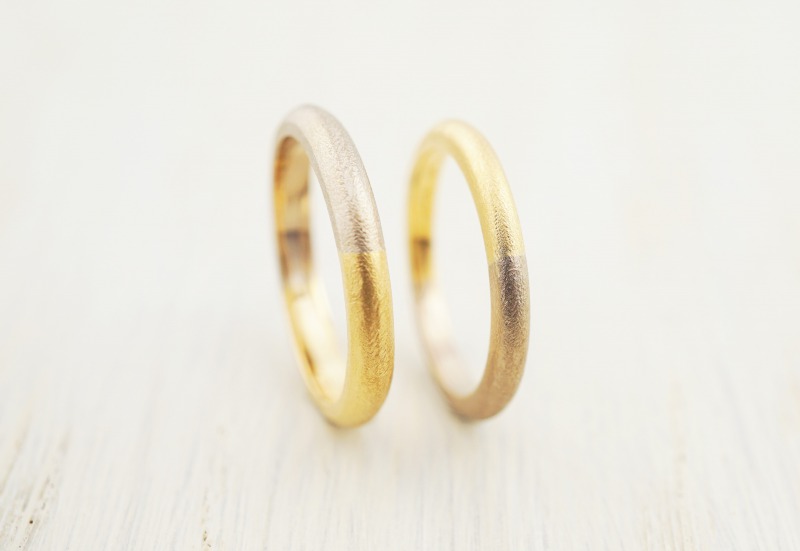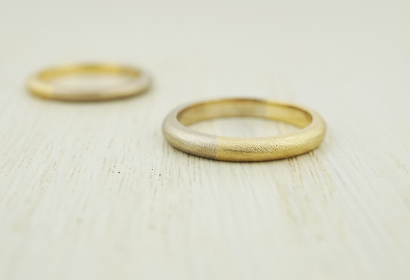 半分で素材を分けた素敵な結婚指輪が出来上がりました。