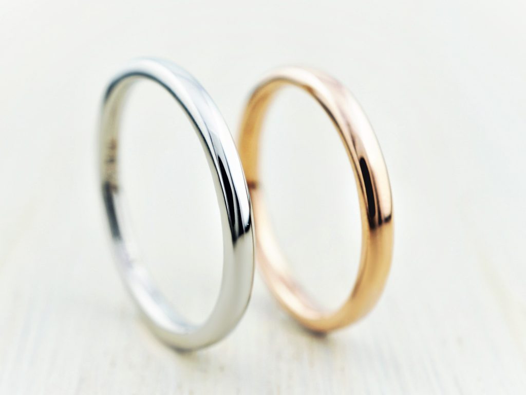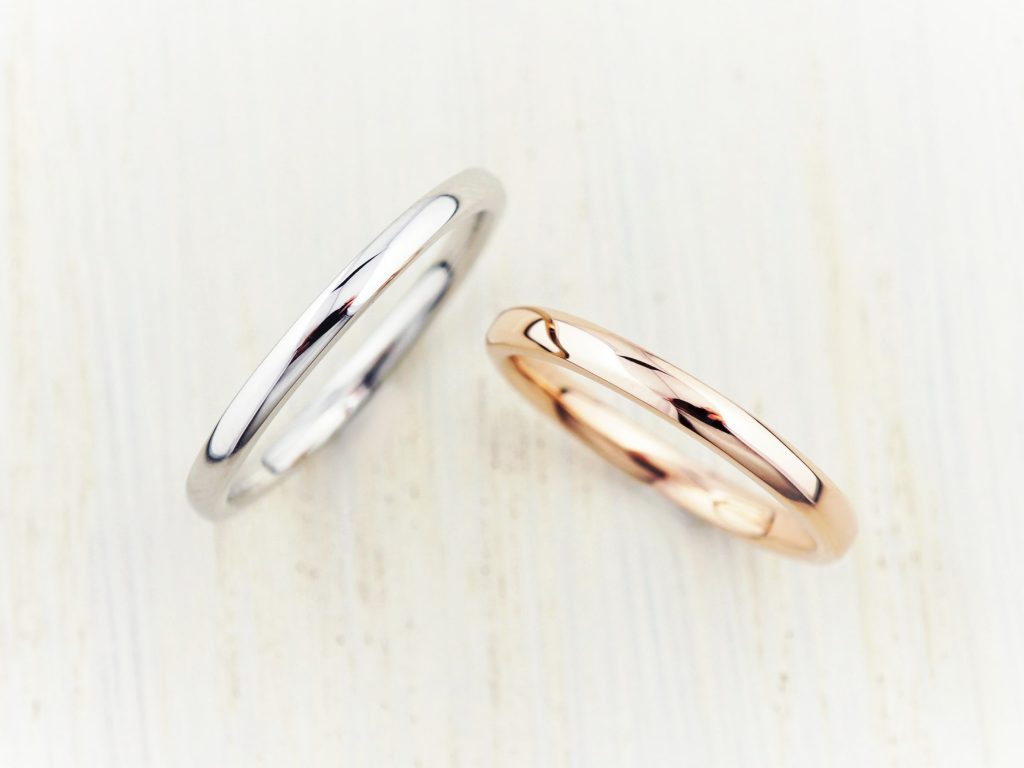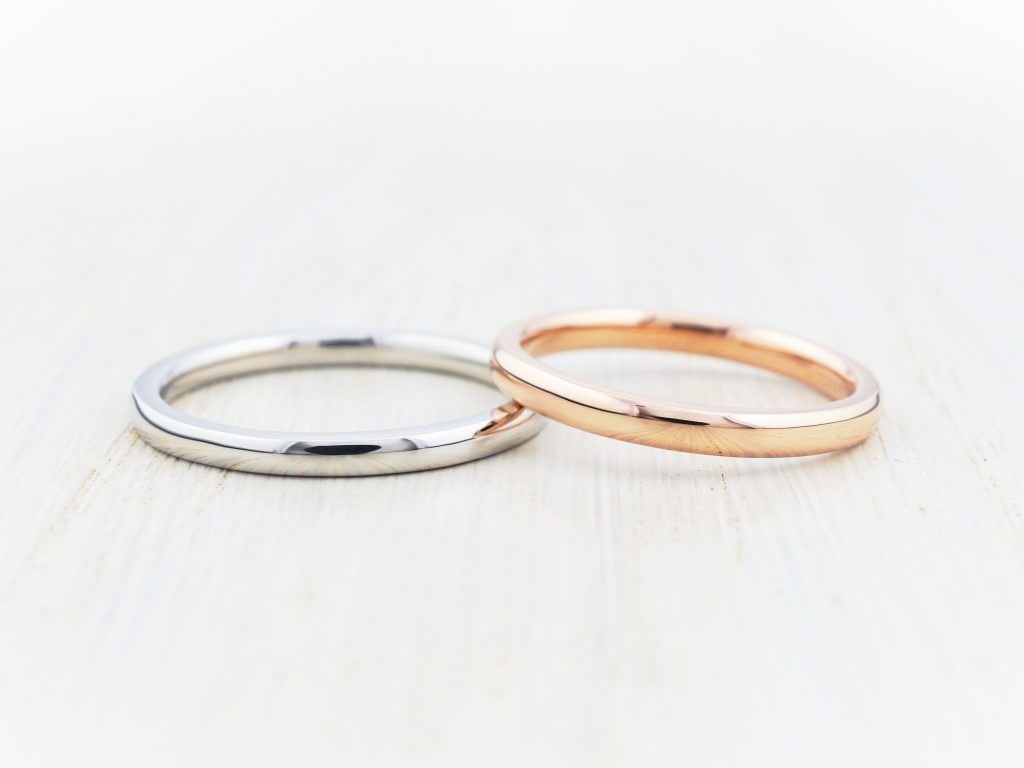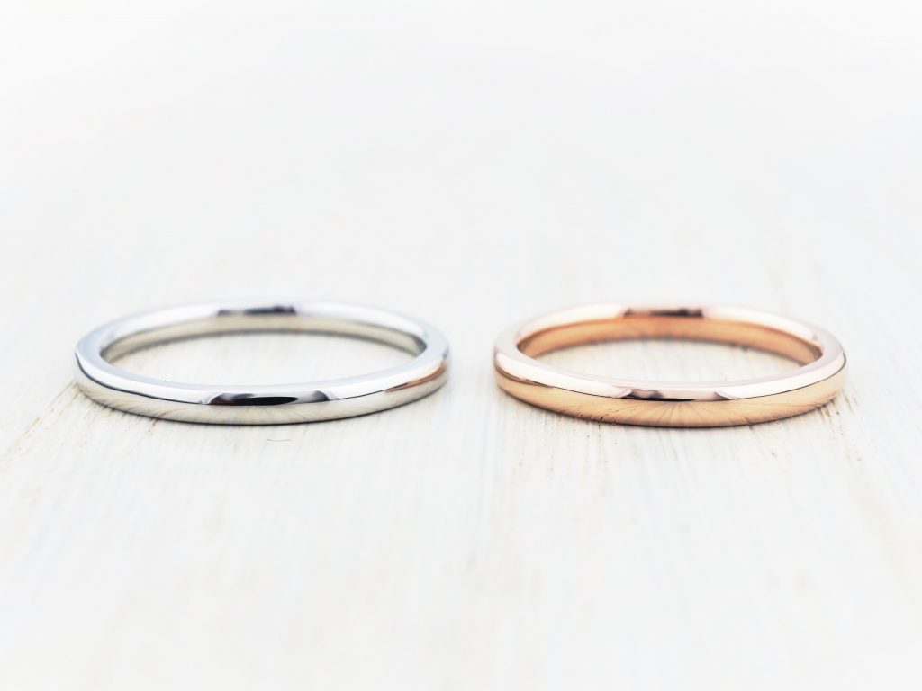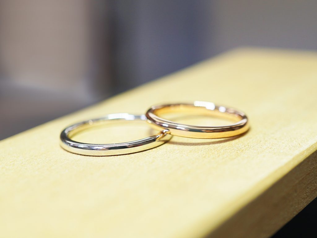 指輪の幅と、甲丸の形がそれぞれの雰囲気が出ていて