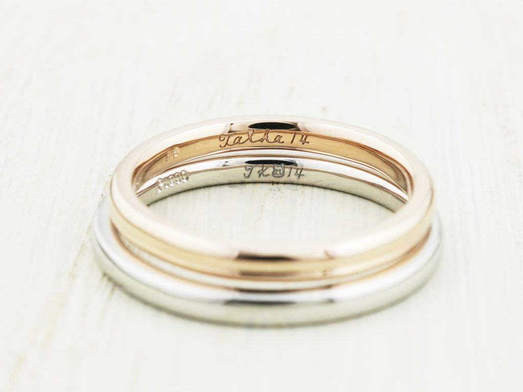 指輪の内側には、二人の手書き文字をレーザーで刻印。