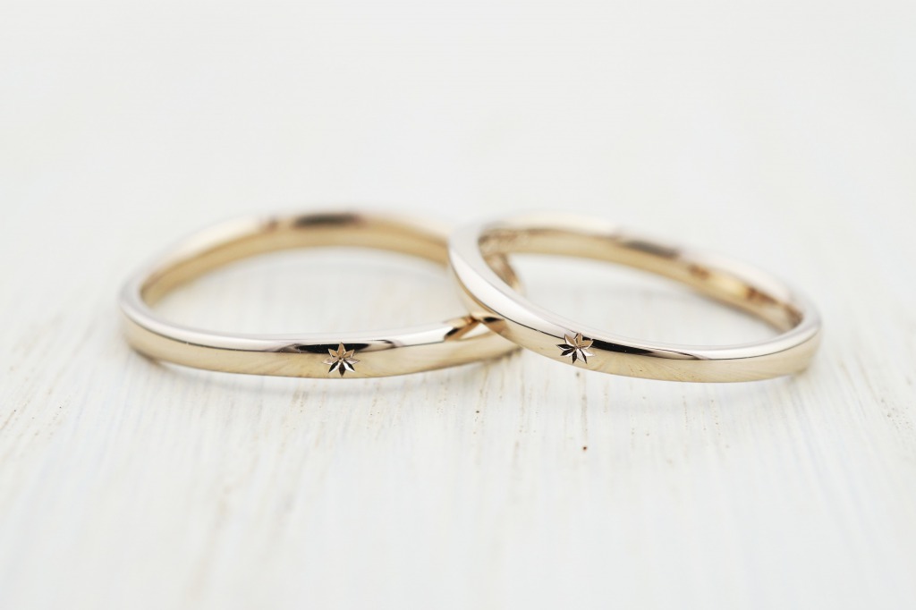 指輪の正面反対側には星彫りをお揃いで施しています。