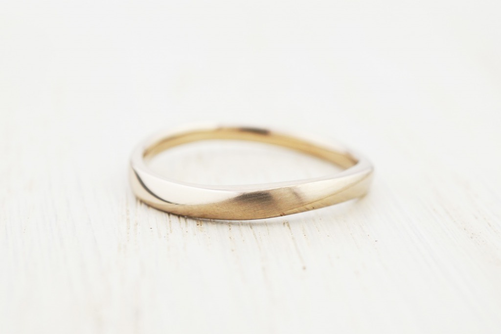 指輪はシンプルでひねりが活かされたデザイン。
