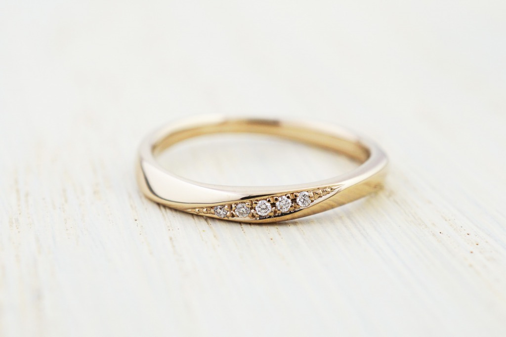 奥様の指輪にはひねり部分にホワイトダイヤモンドを5石。