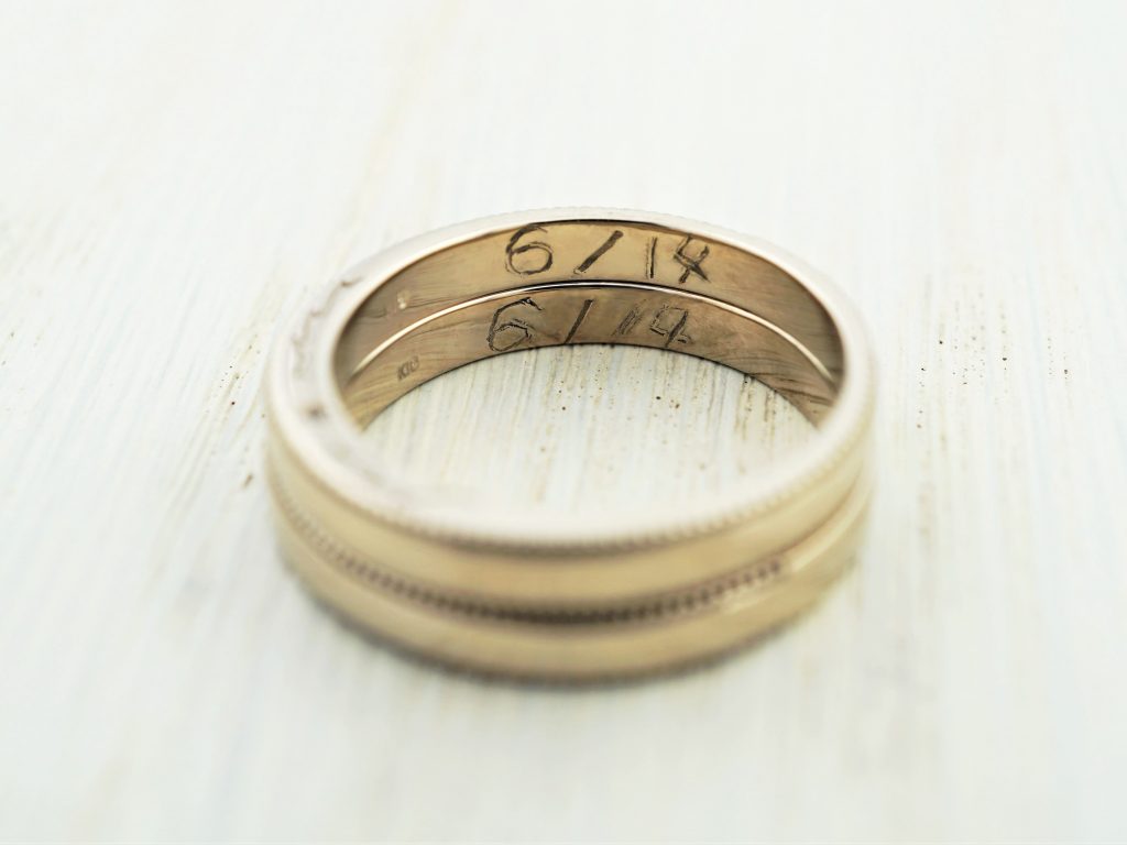 温かみを感じる、二人の字が指輪の内側にしっかりと入り