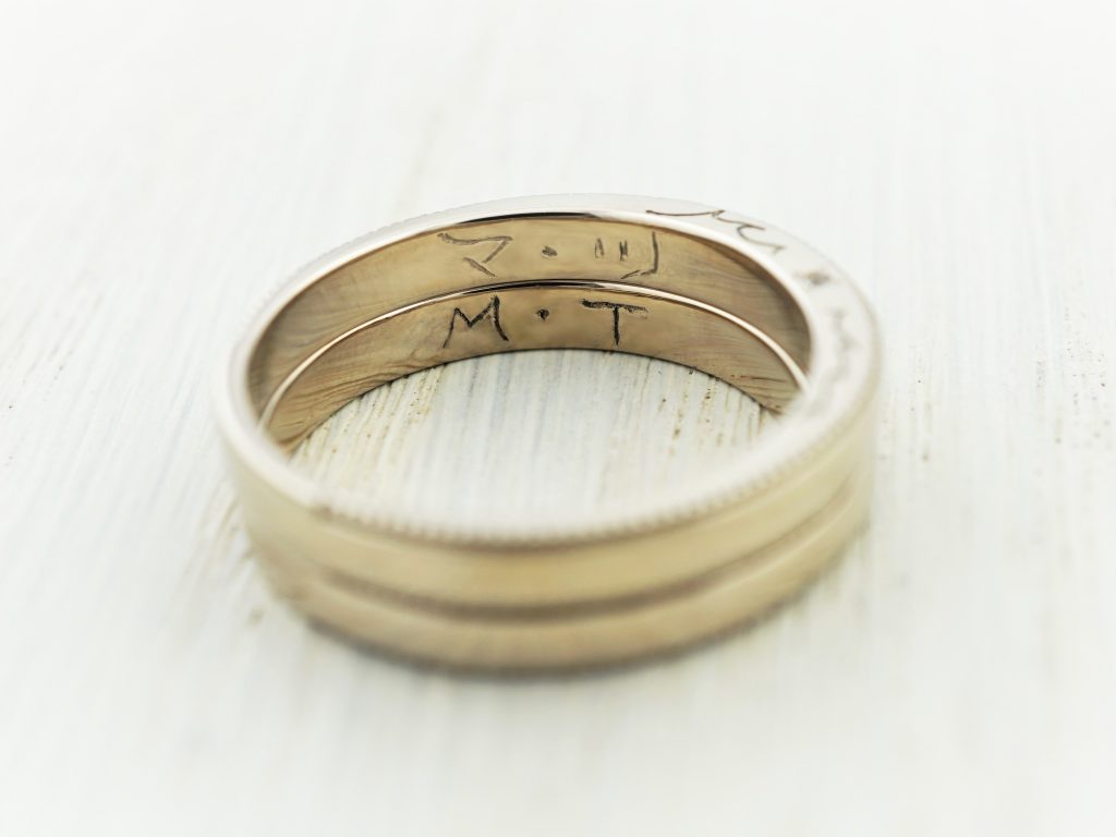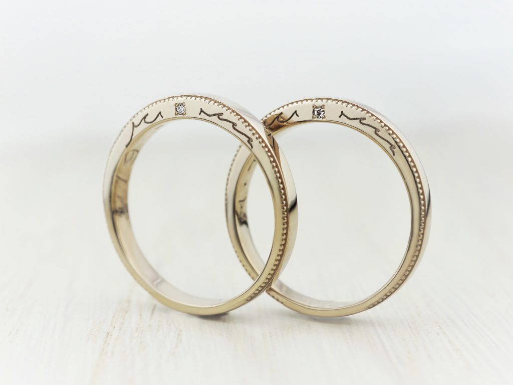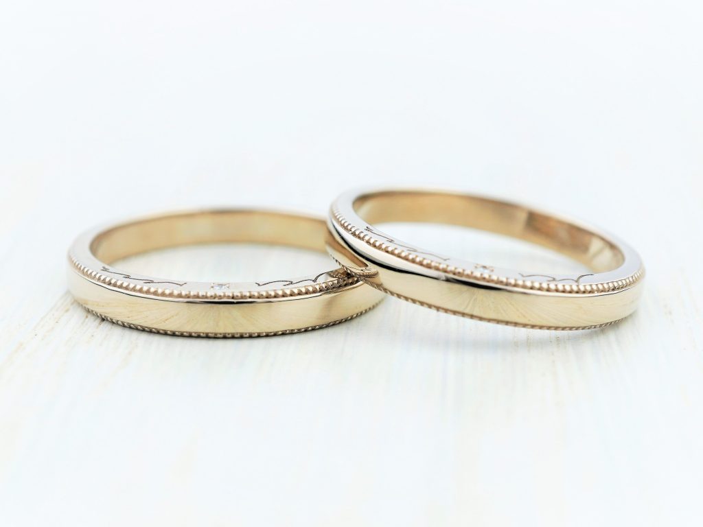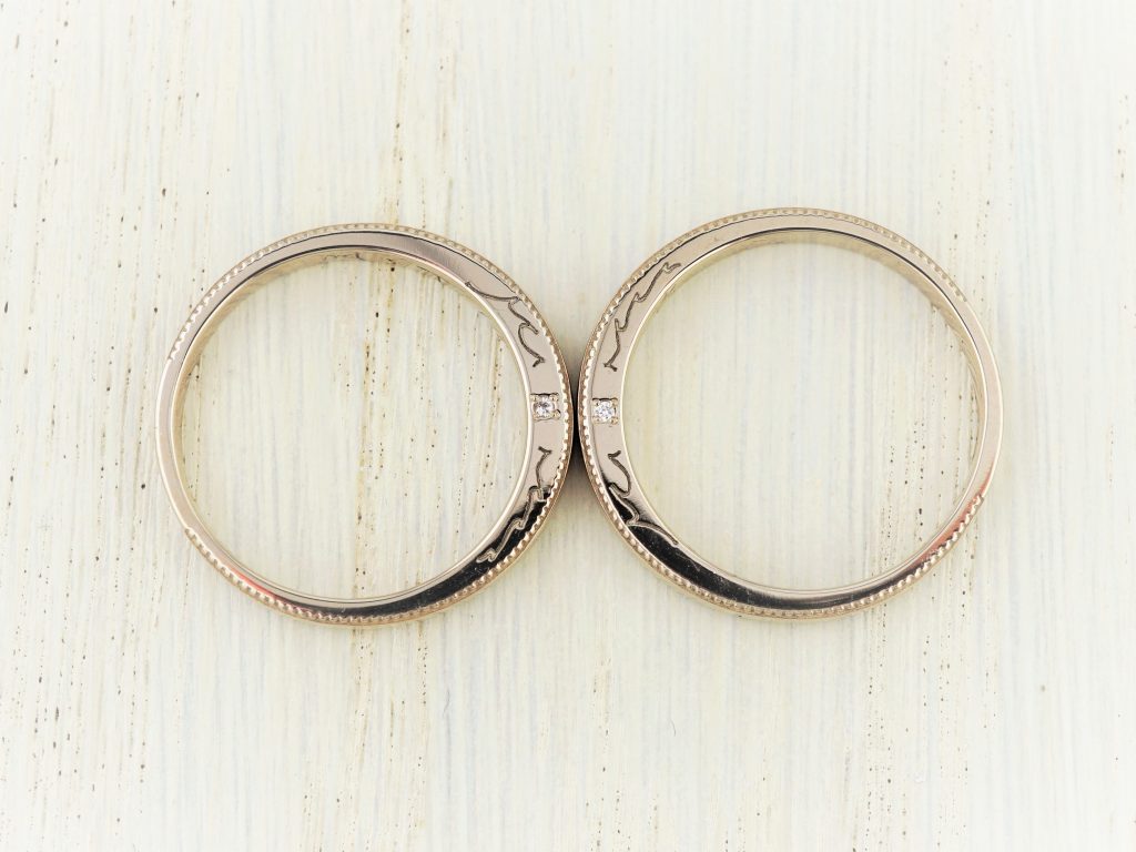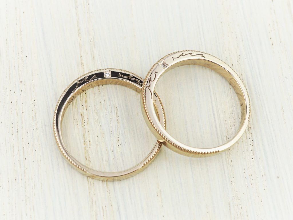 オリジナルモチーフの彫りを入れた結婚指輪