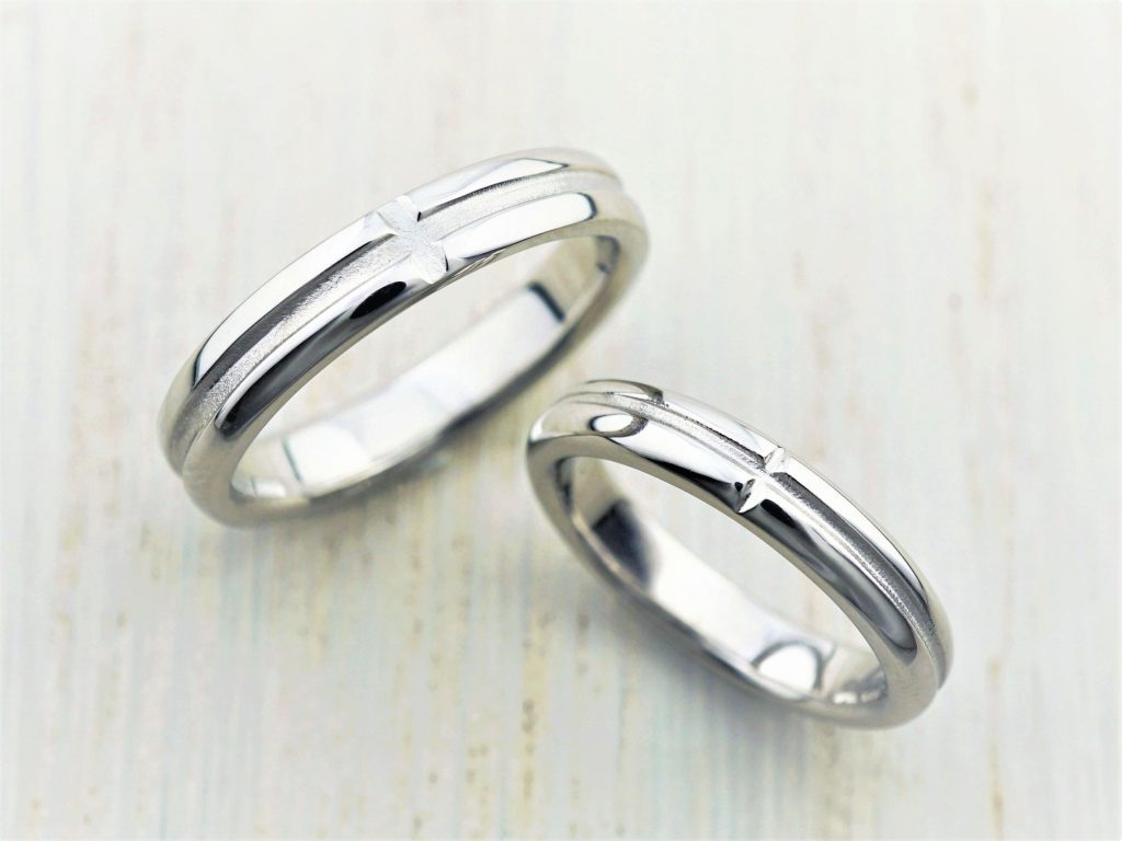 ご主人と奥様の指輪は少し違う加工を施してあります。