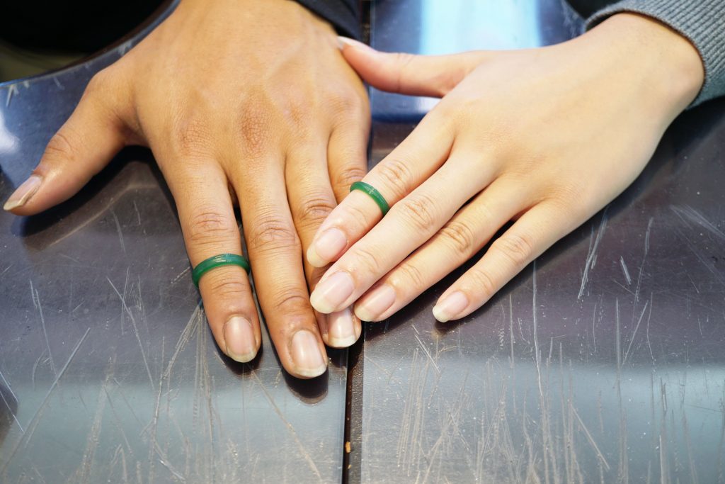 様々なサンプルリングを指に通して選んだため着け心地もバッチリ!