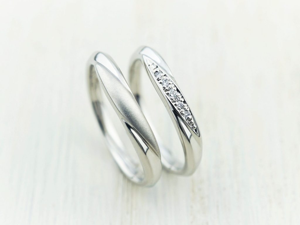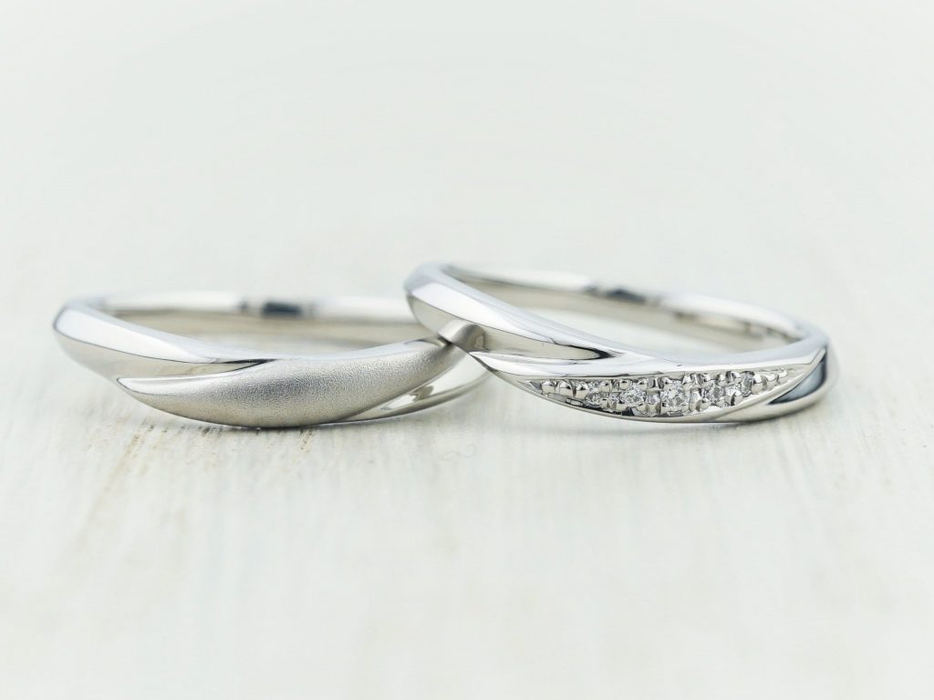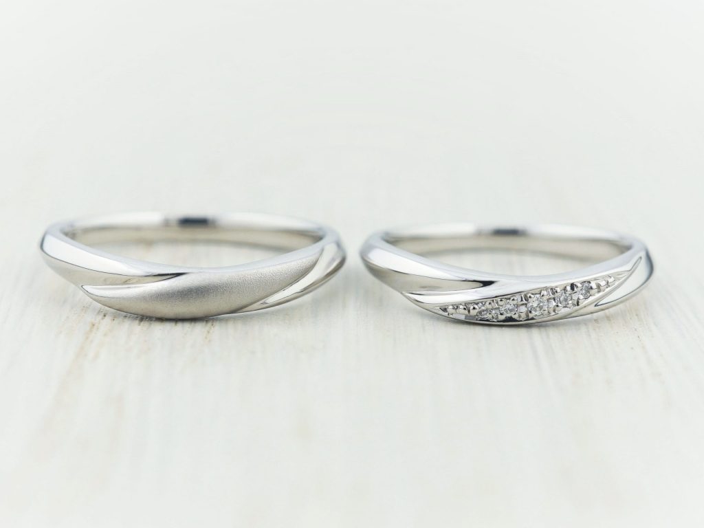 ウェーブを作り、そこにダイヤモンド(Lady’s)やマット加工(Men’s)した所がこだわりです。