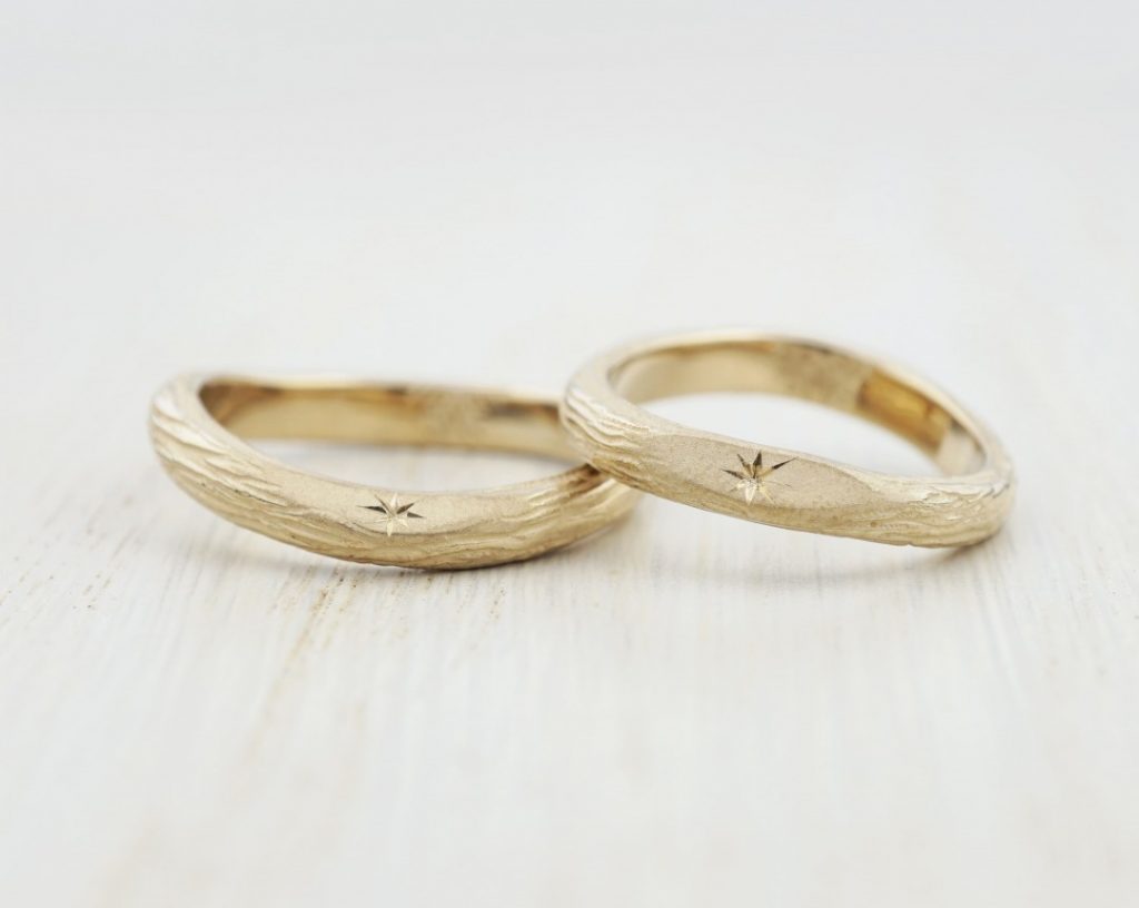 細かいところまでおふたりの個性が溢れ出た素敵な結婚指輪です。