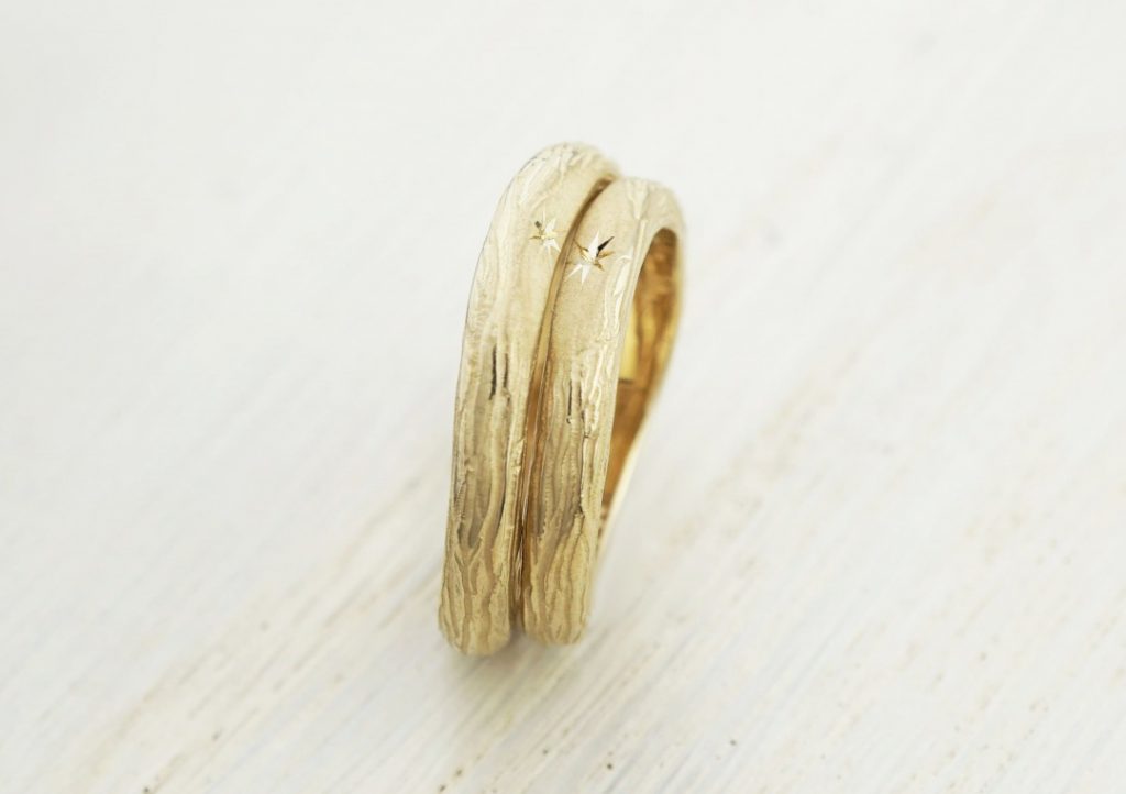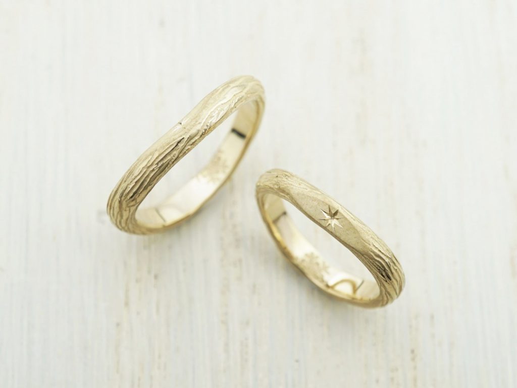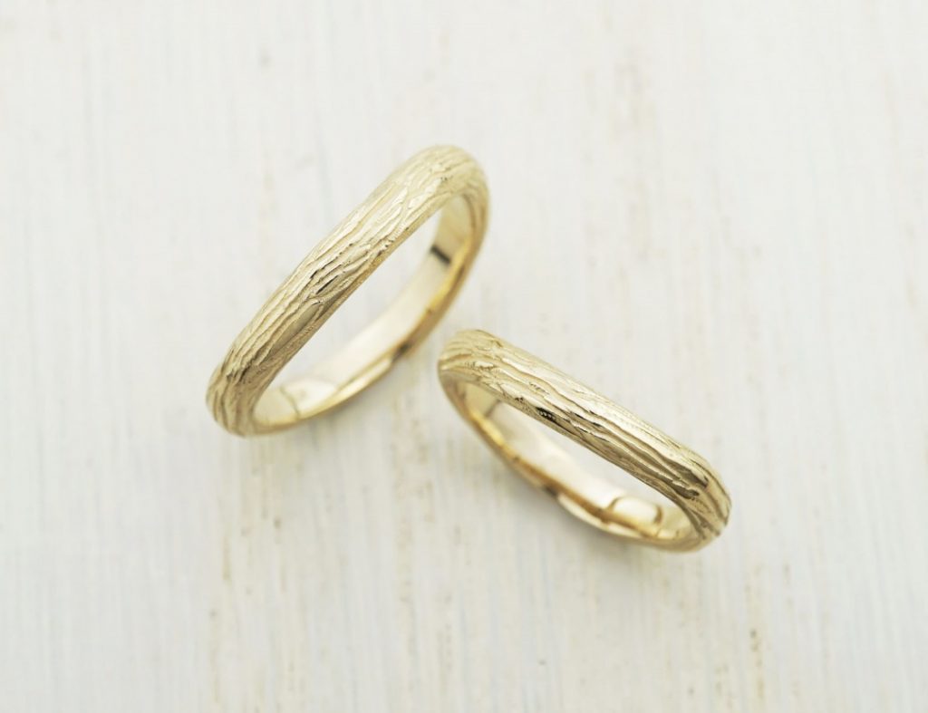 木目の雰囲気を結婚指輪に表現した素敵な作品をご紹介します。