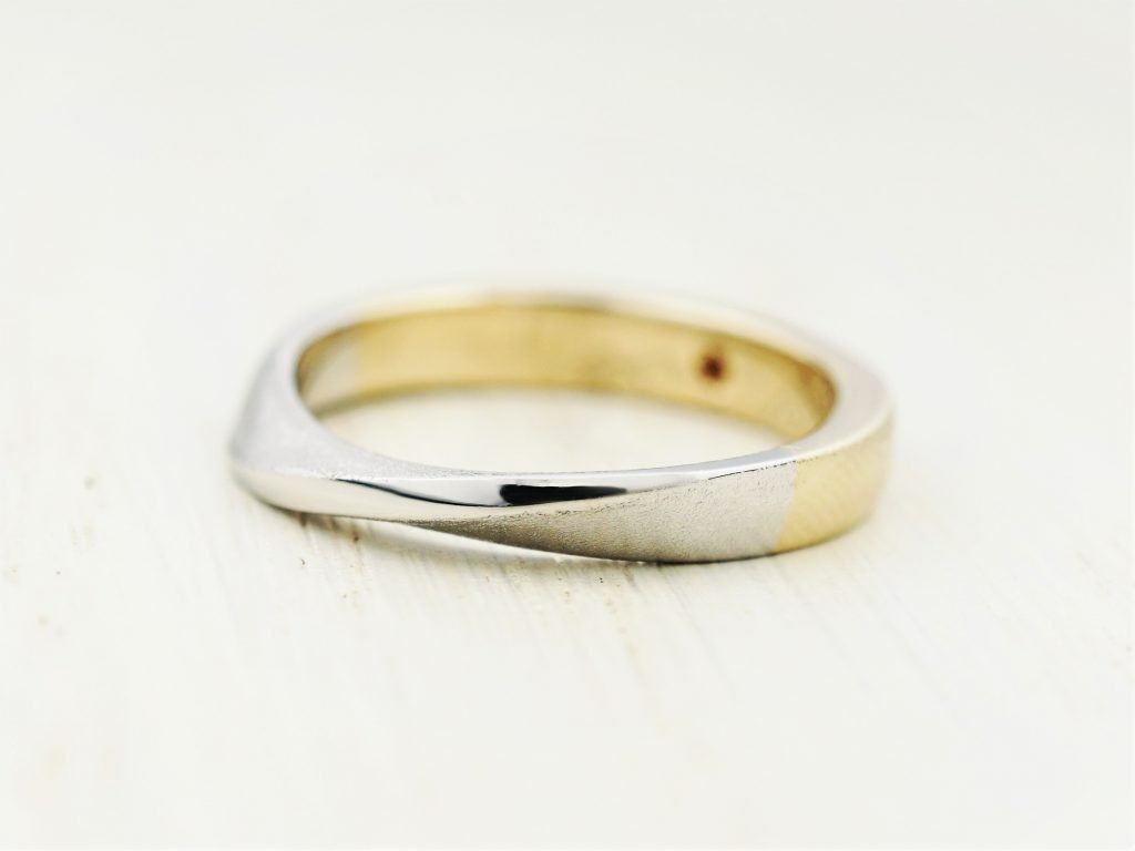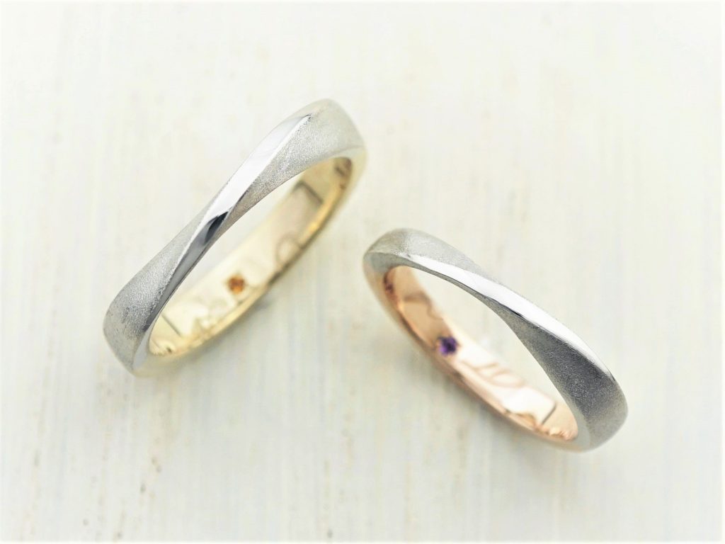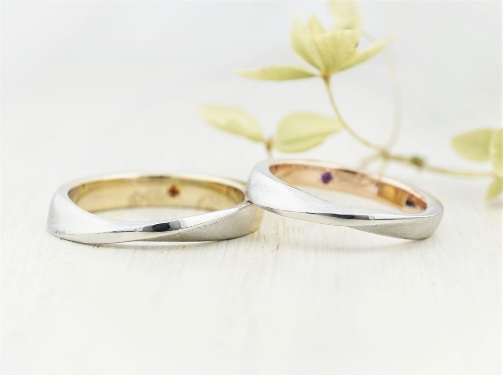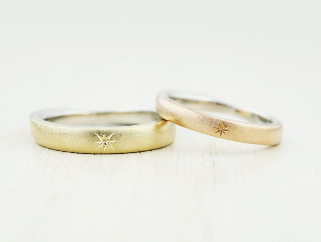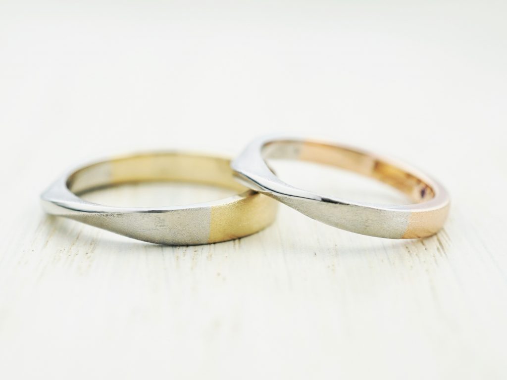 Men’sリングはプラチナとシャンパンゴールド素材を使用。