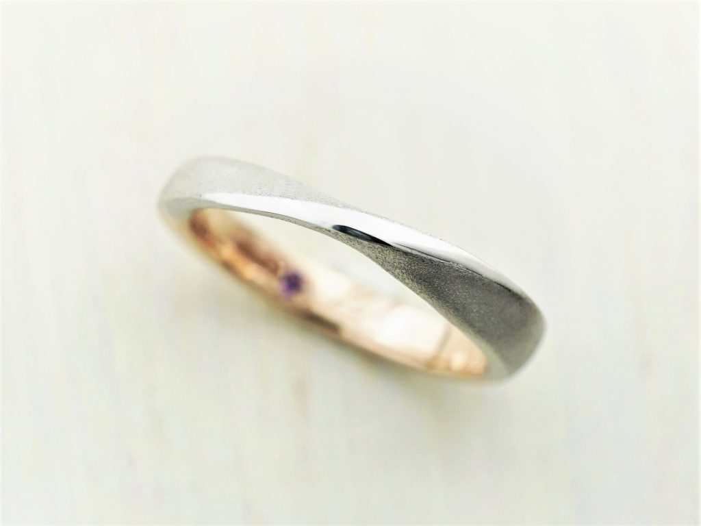Lady’sリングはプラチナとピンクゴールド素材を使用。