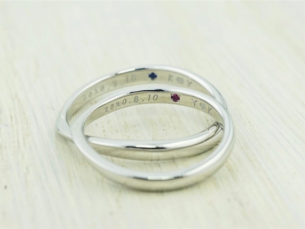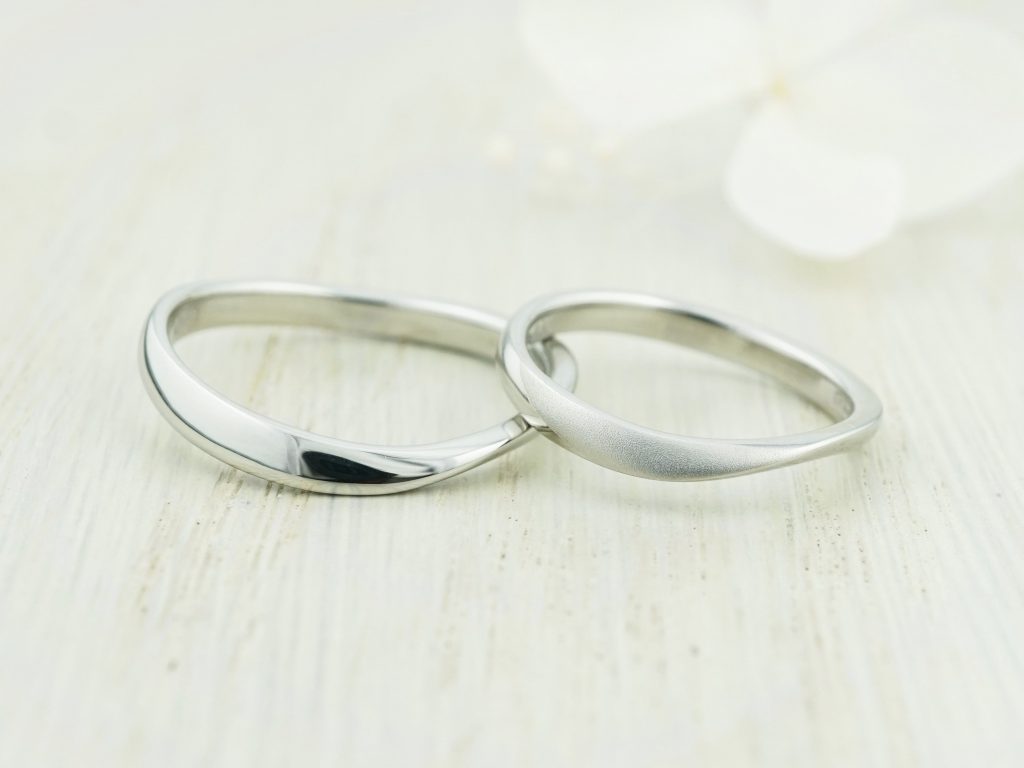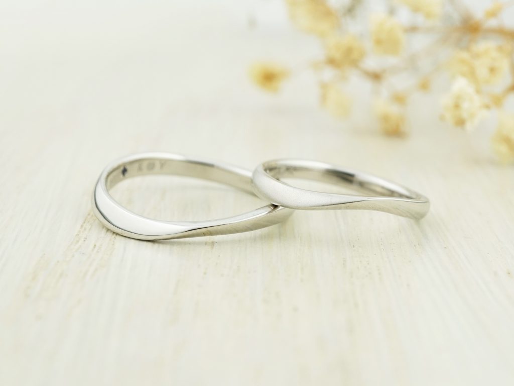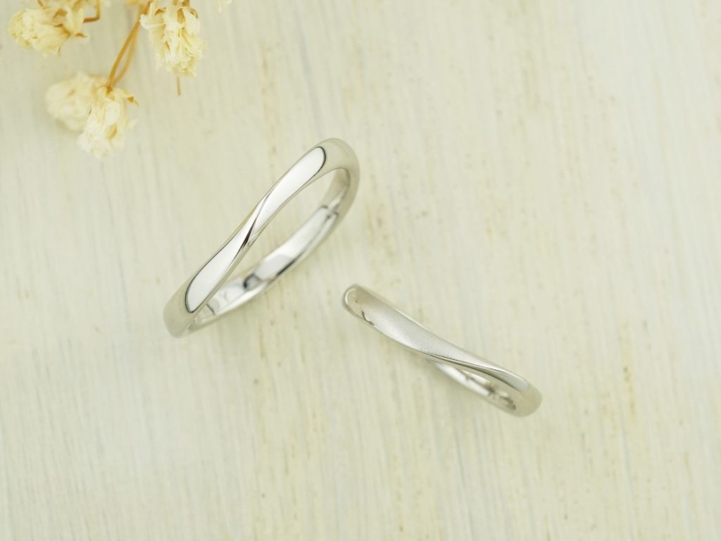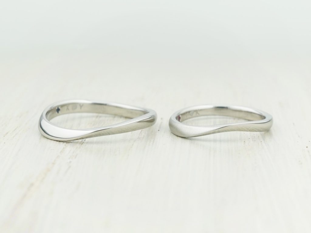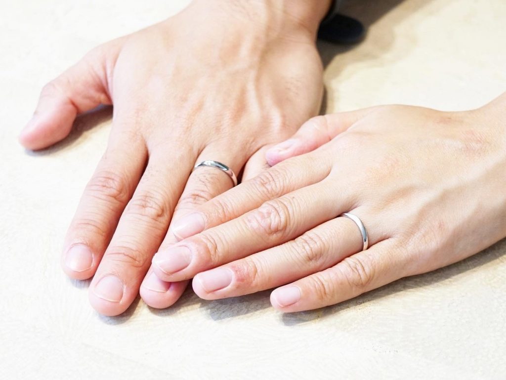men’sリングは幅2.4mm、Lady’sリングは幅2.2mmで