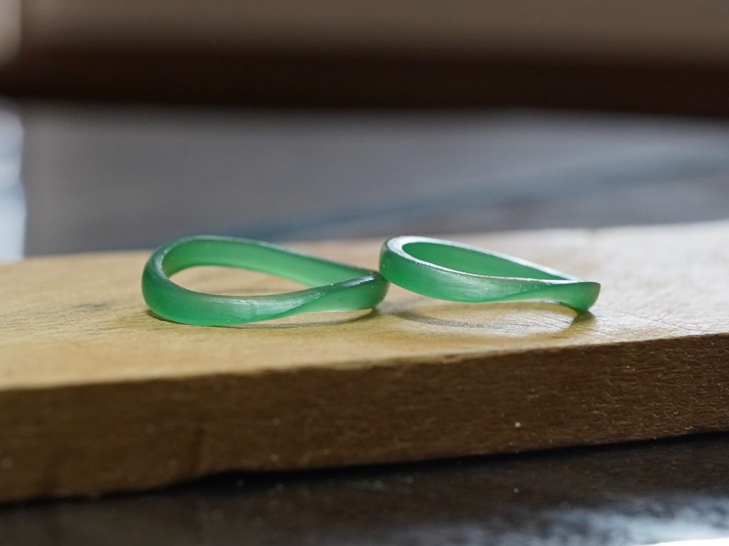 指輪の形状も、デザインも何ヵ所もひねりを出す