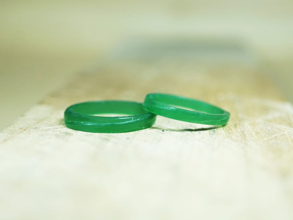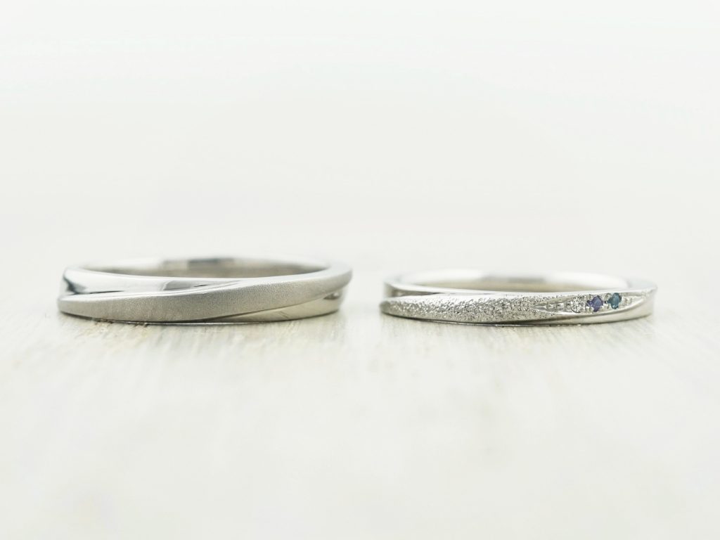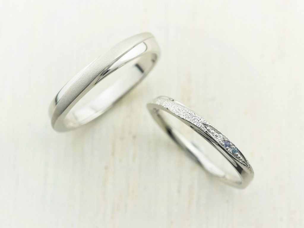 どちらもプラチナ900素材のストレートリング。