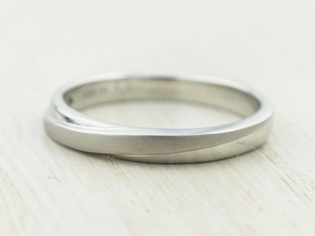 加工違いの斜めラインを入れたシンプルなデザインの結婚指輪