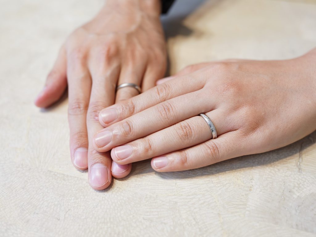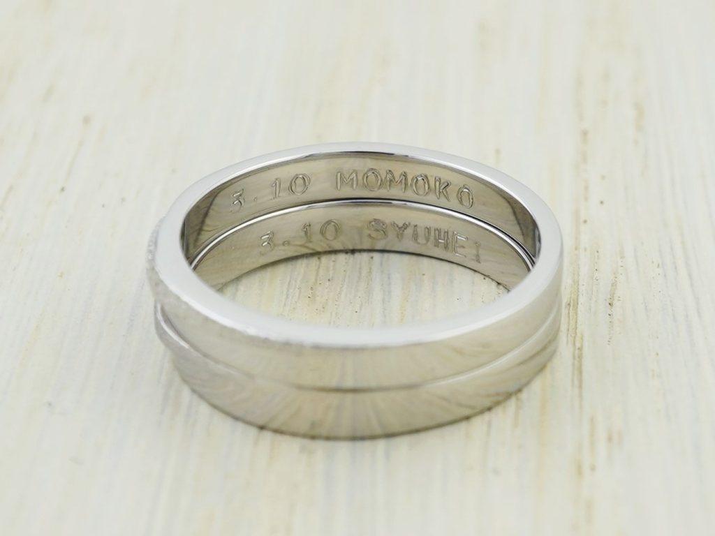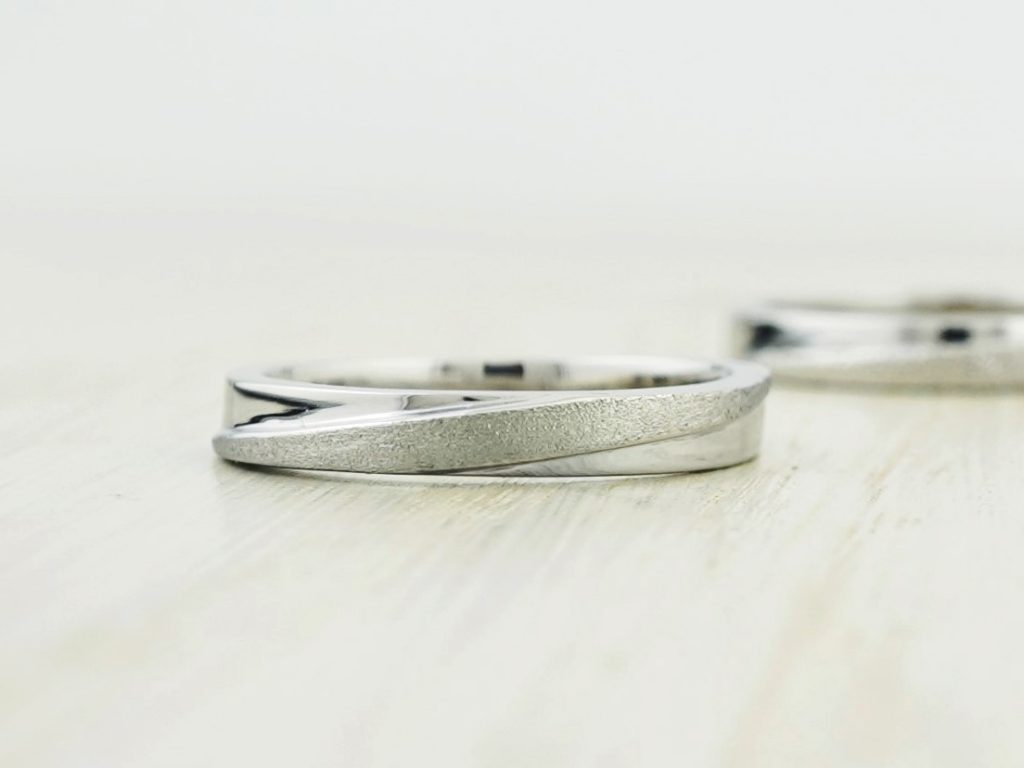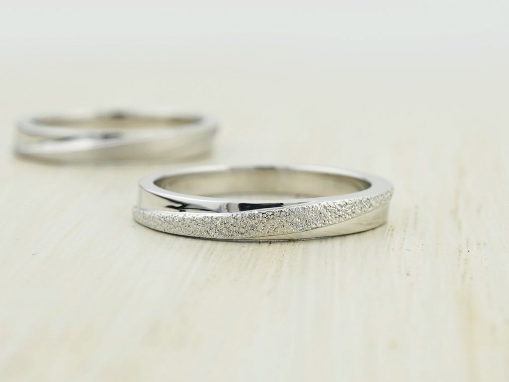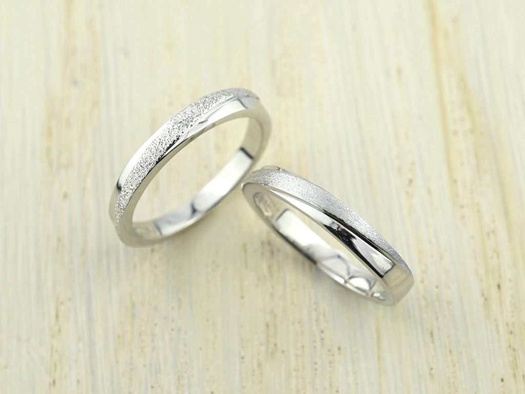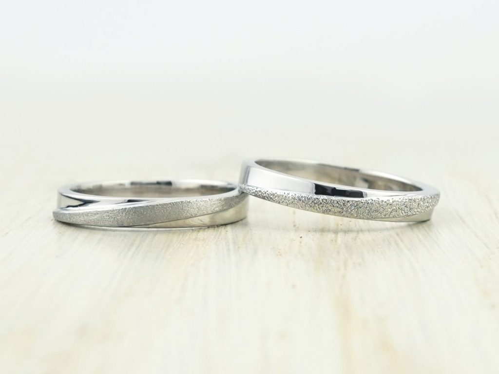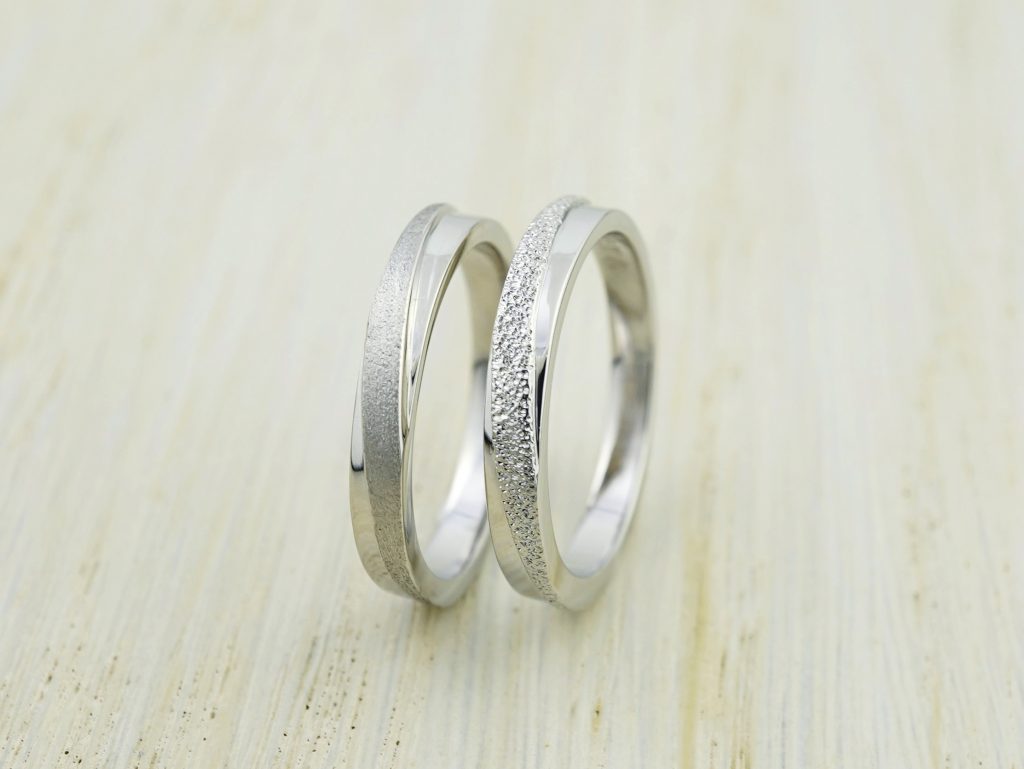スターダストとホーニングで加工を変えた、お揃いの形の結婚指輪