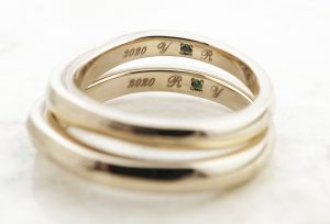 内側には年号とお互いのイニシャル、それとエメラルドを留めています。