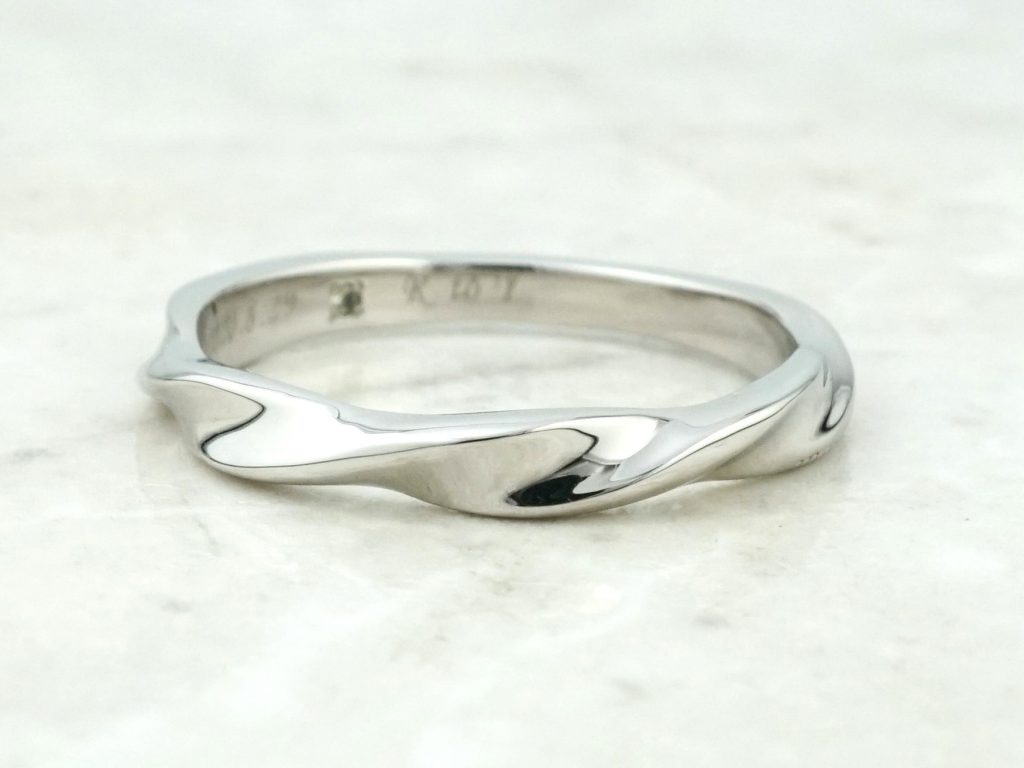 指輪のフォルムを魅せる光沢仕上げの指輪。