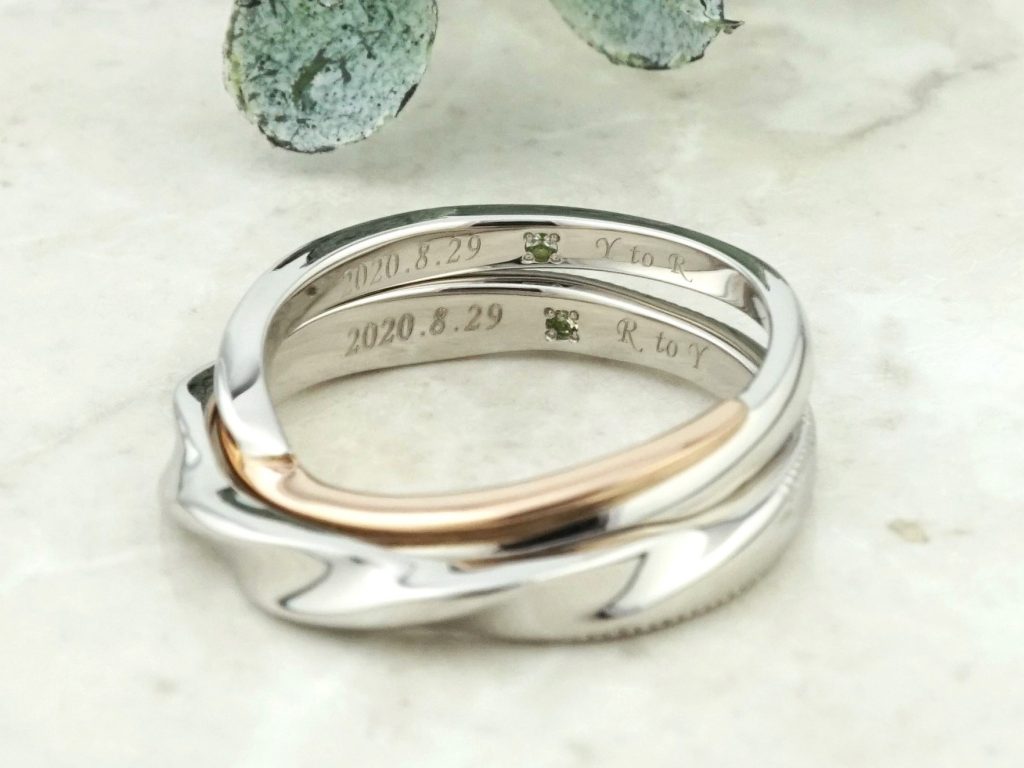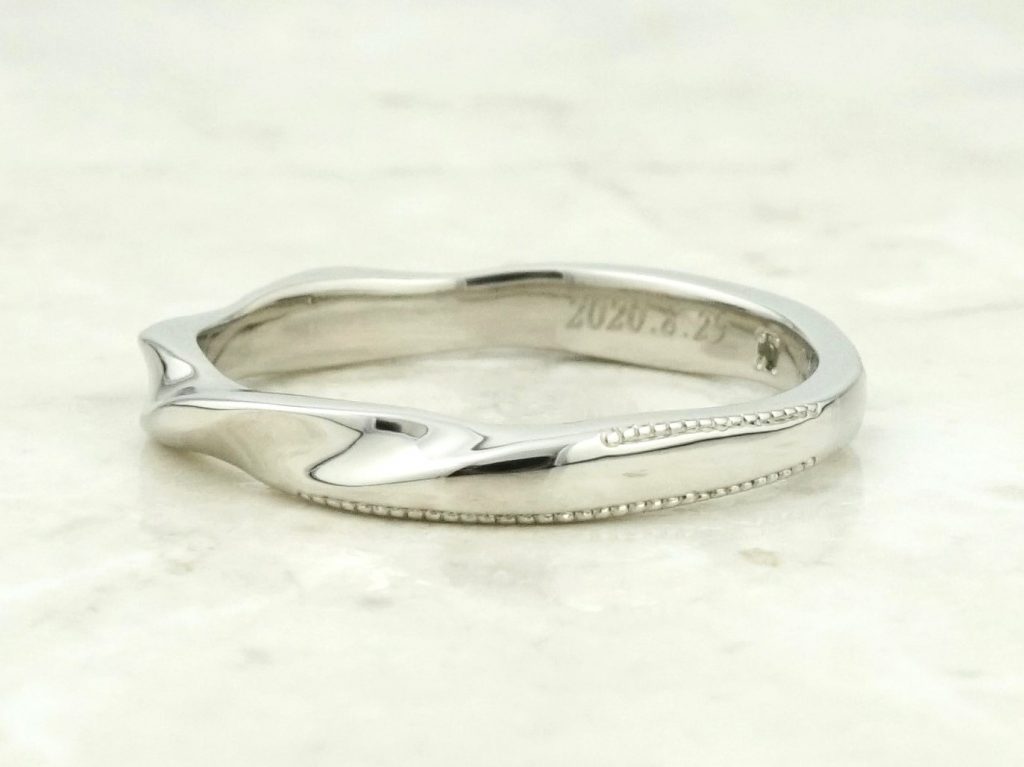 内側には記念日、イニシャルをレーザー刻印し