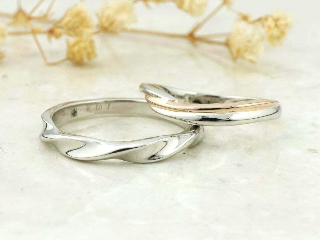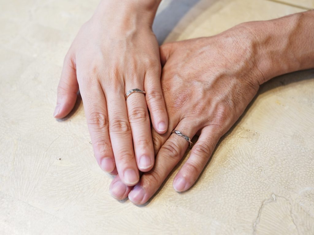 お二人が選んだ指輪はそれぞれデザイン違い。