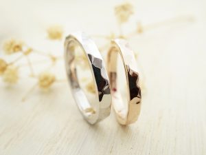 シンプルでそれぞれの面が光る手作り結婚指輪をご紹介いたします。