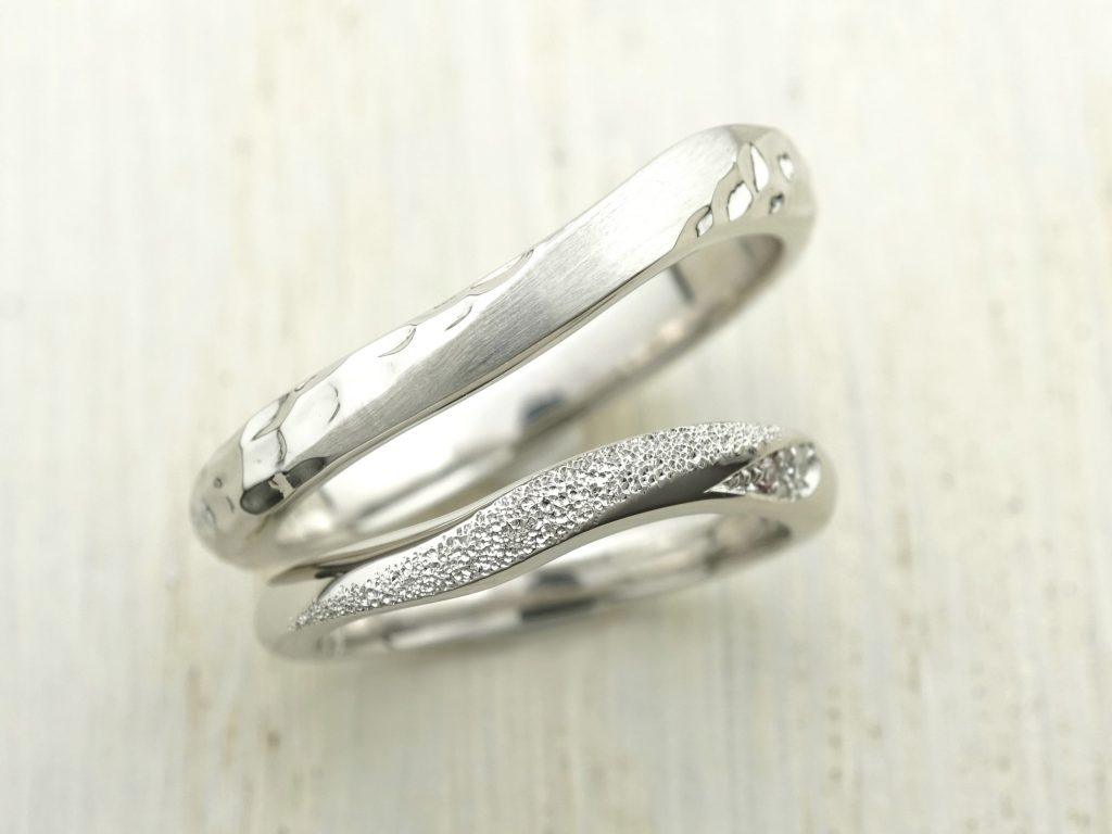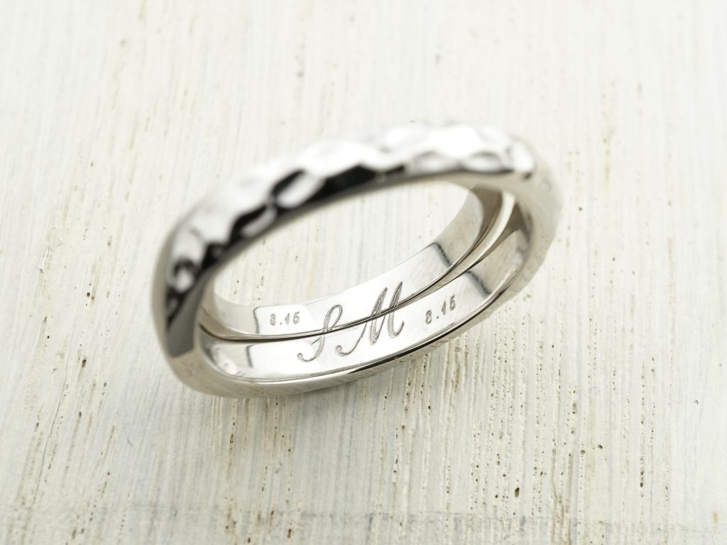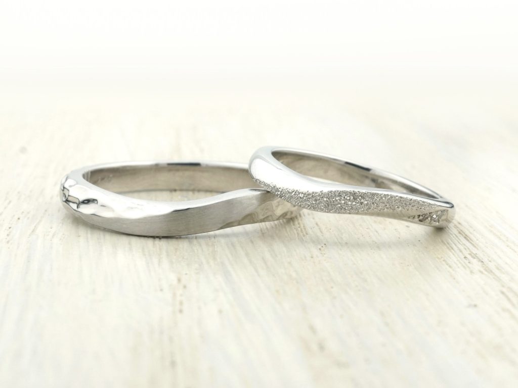 同じウェーブリングの中にそれぞれの好みを取り入れた指輪