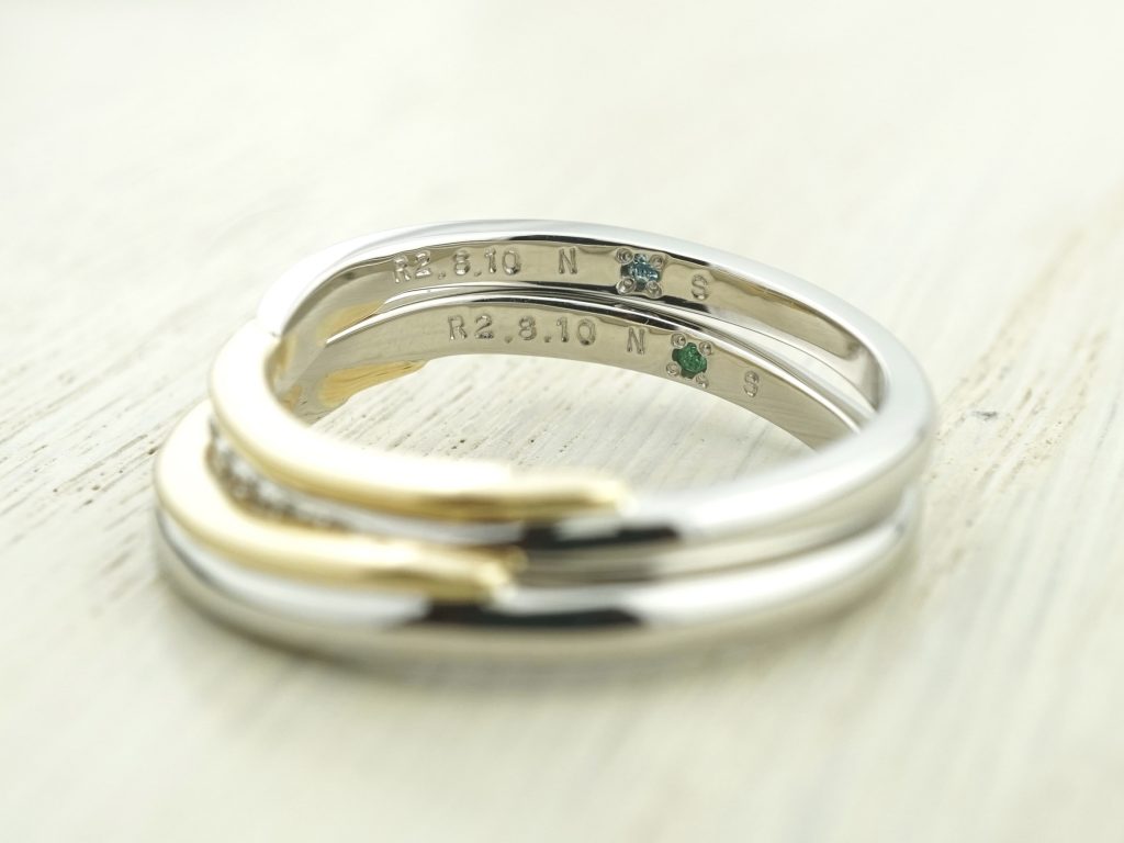 内側には記念日とイニシャルを打刻で刻印入れ。