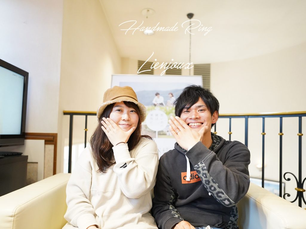 出来上がった指輪にとても喜んで下さったお二人。