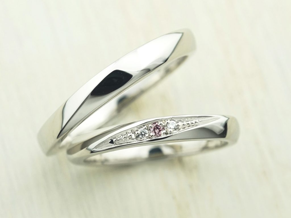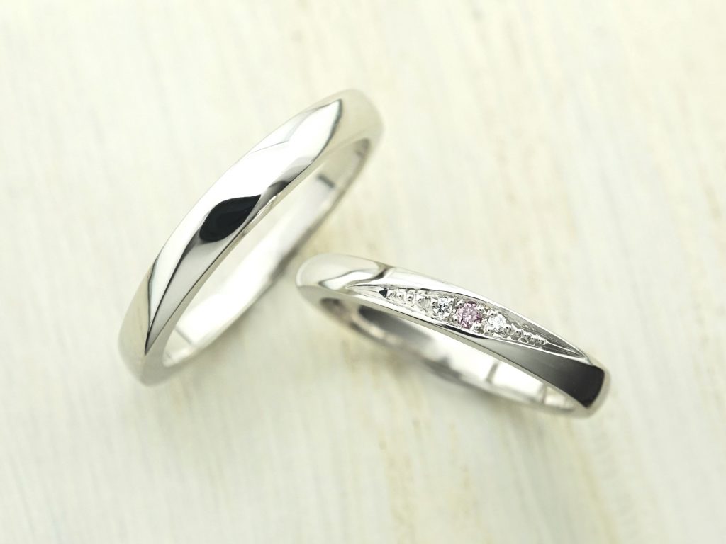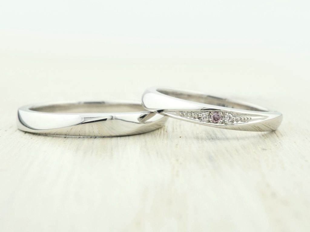 Men’sリングはウェーブ、Lady’sリングはストレート