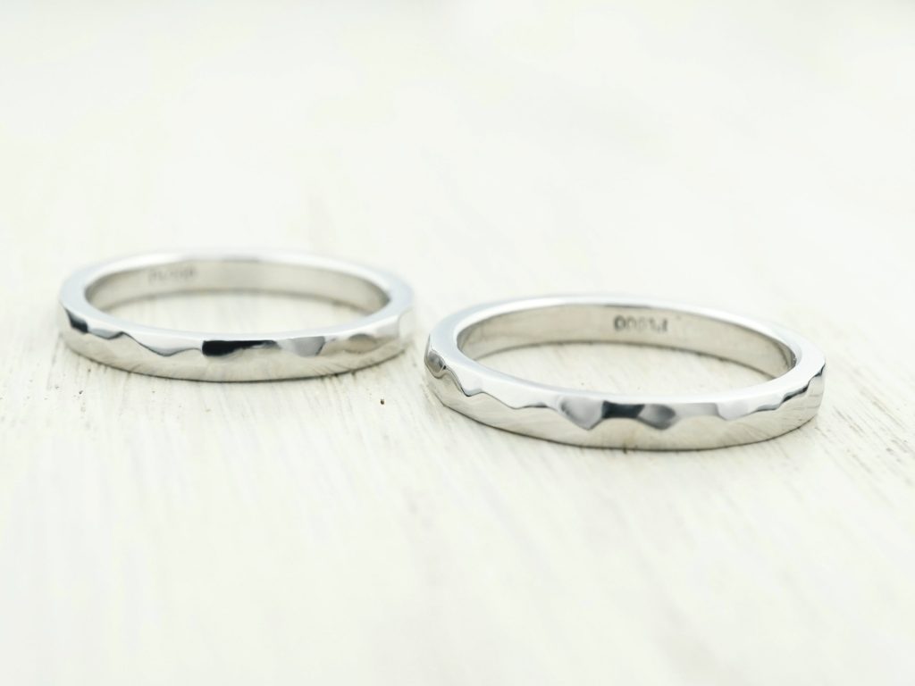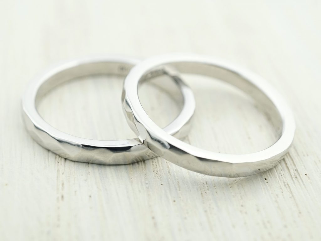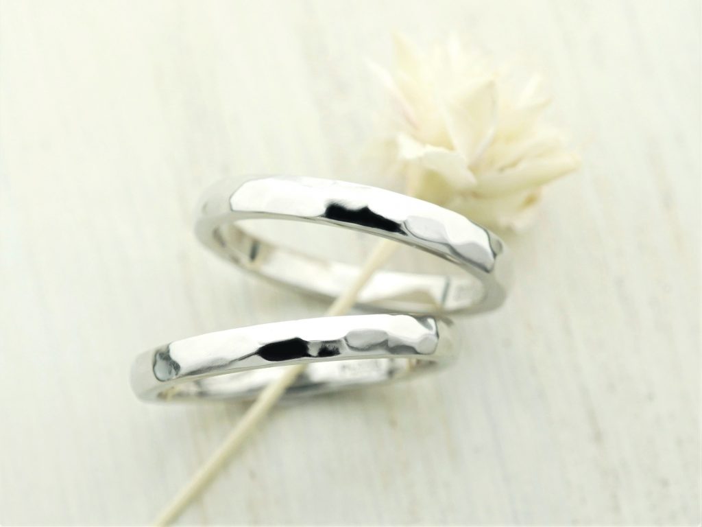 やわらかい鎚目模様を入れたシンプルな結婚指輪が完成