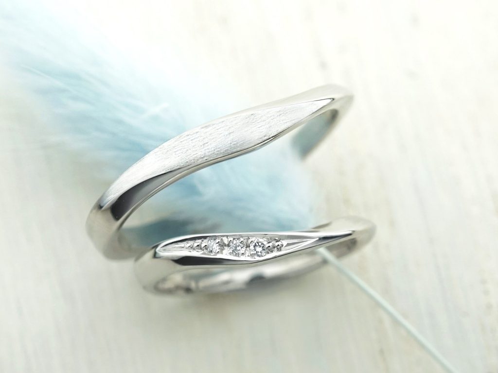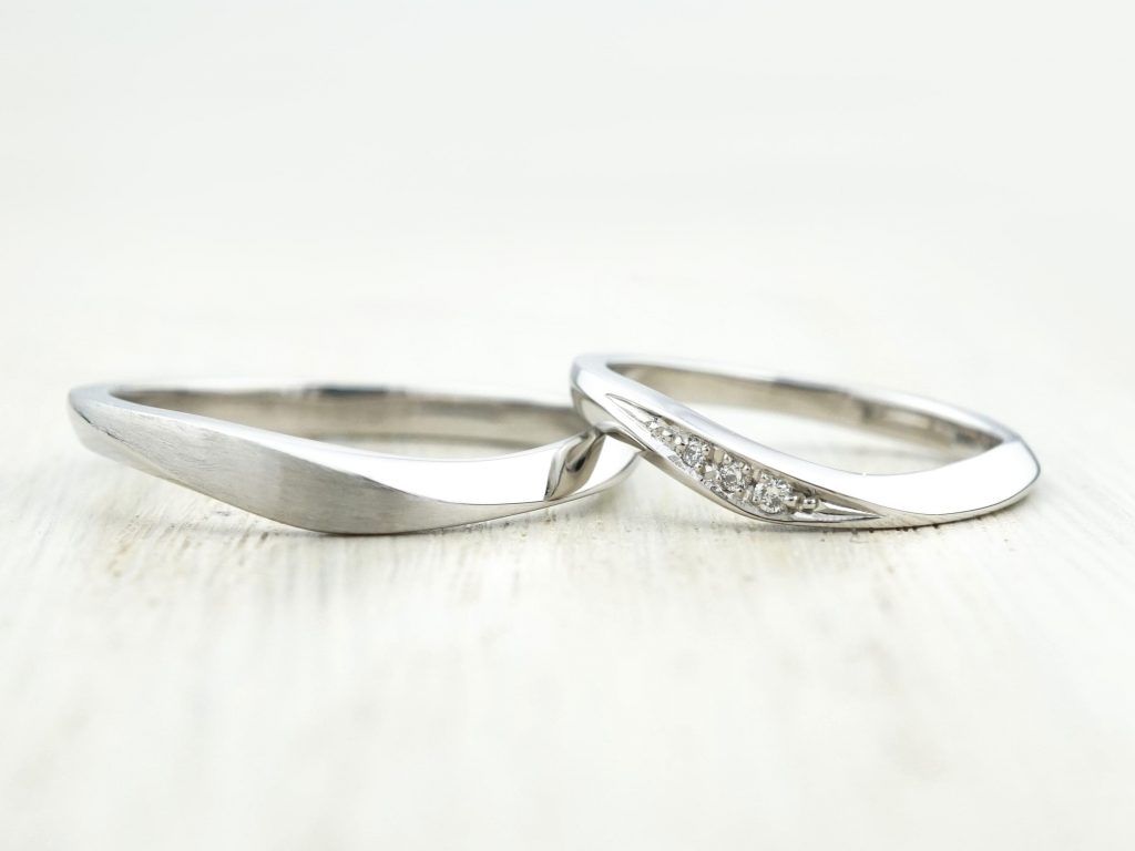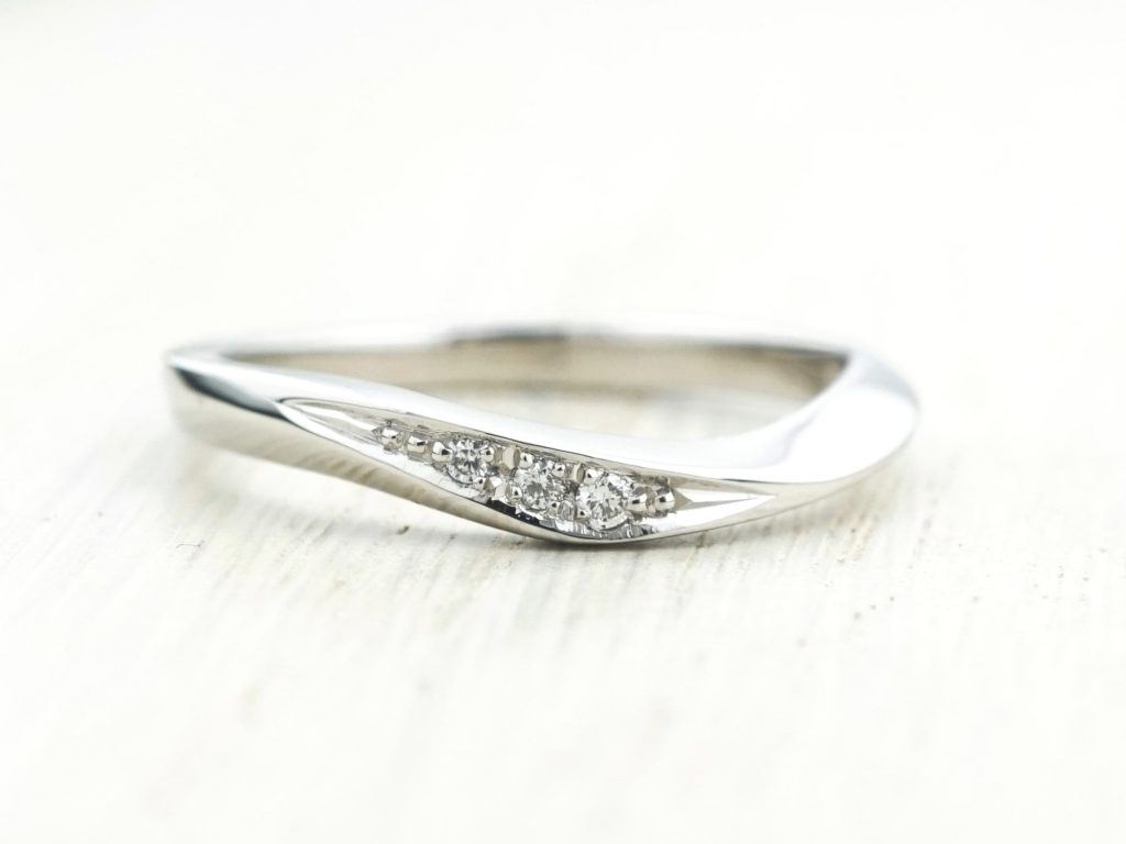 左端から小、中、大と大きさの違うダイヤモンドを使用。