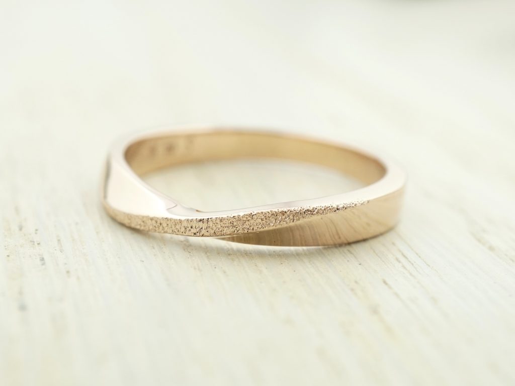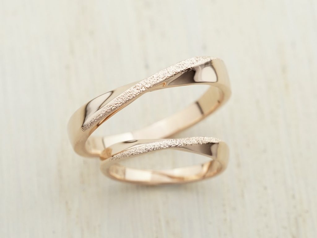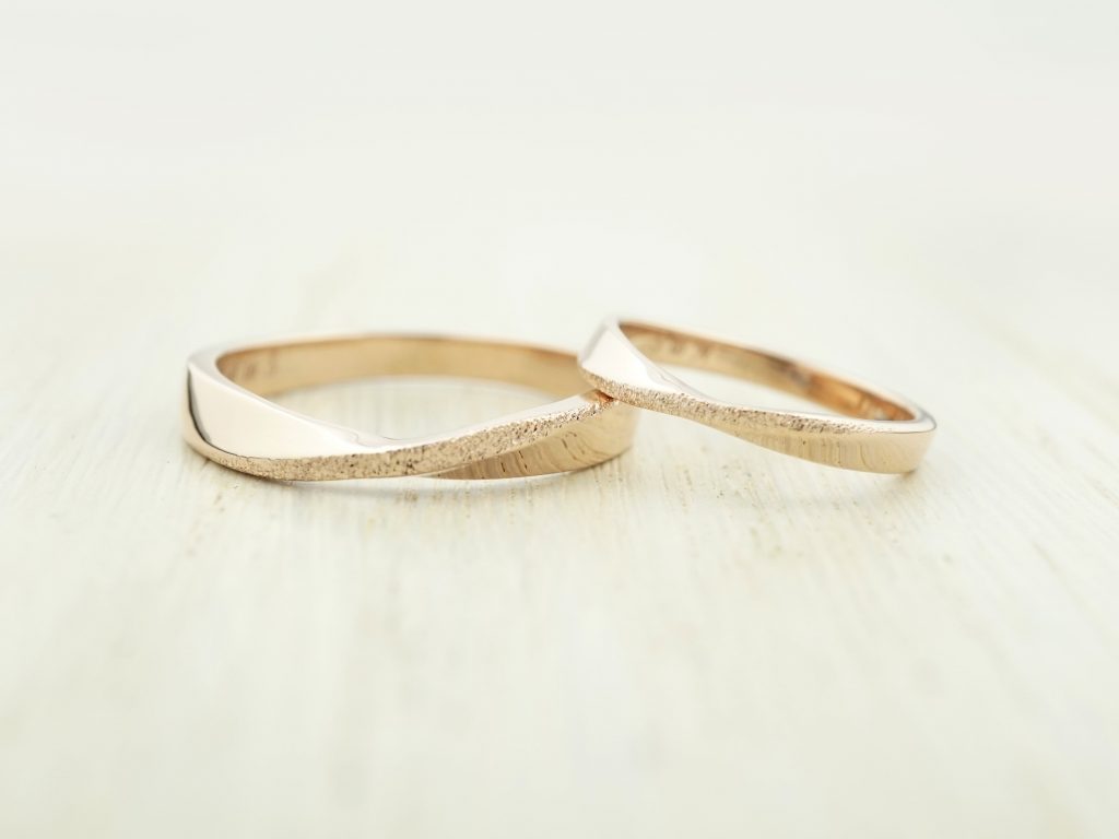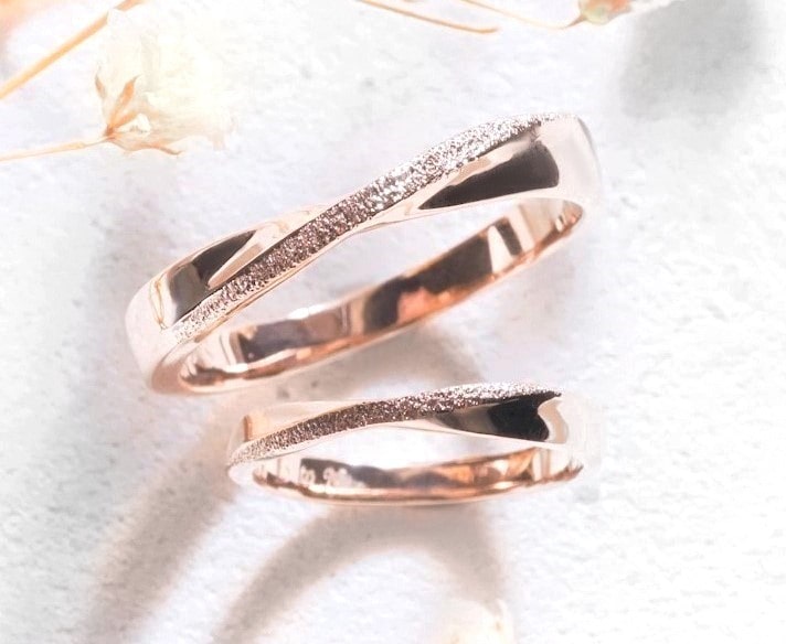 ひねりデザインにお揃いの加工を施した結婚指輪