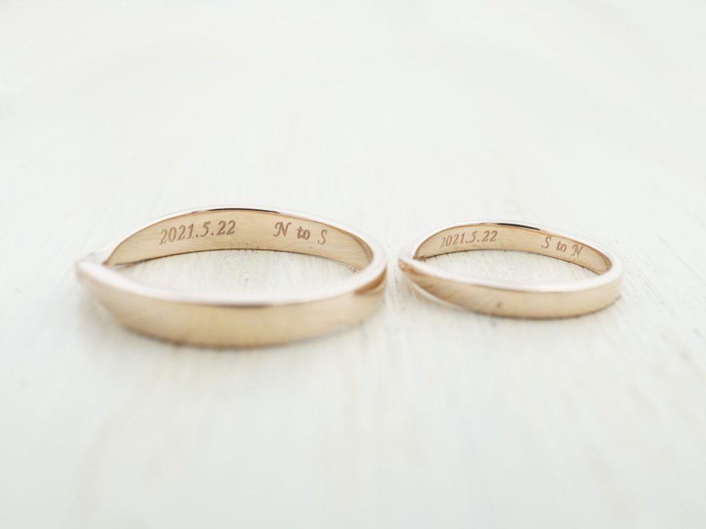 指輪の内側には、お二人の大切な記念日とイニシャルが