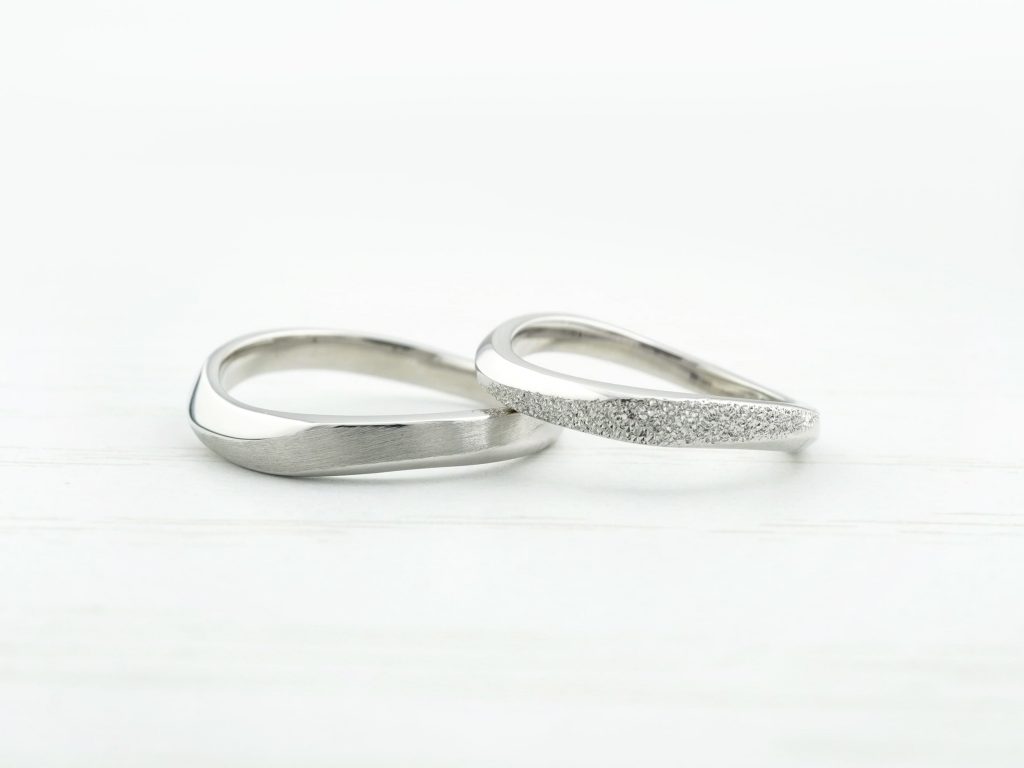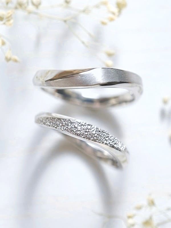 奥様のリングは中央ラインの部分にスターダスト加工を施し、