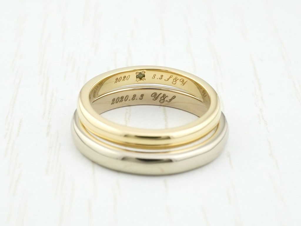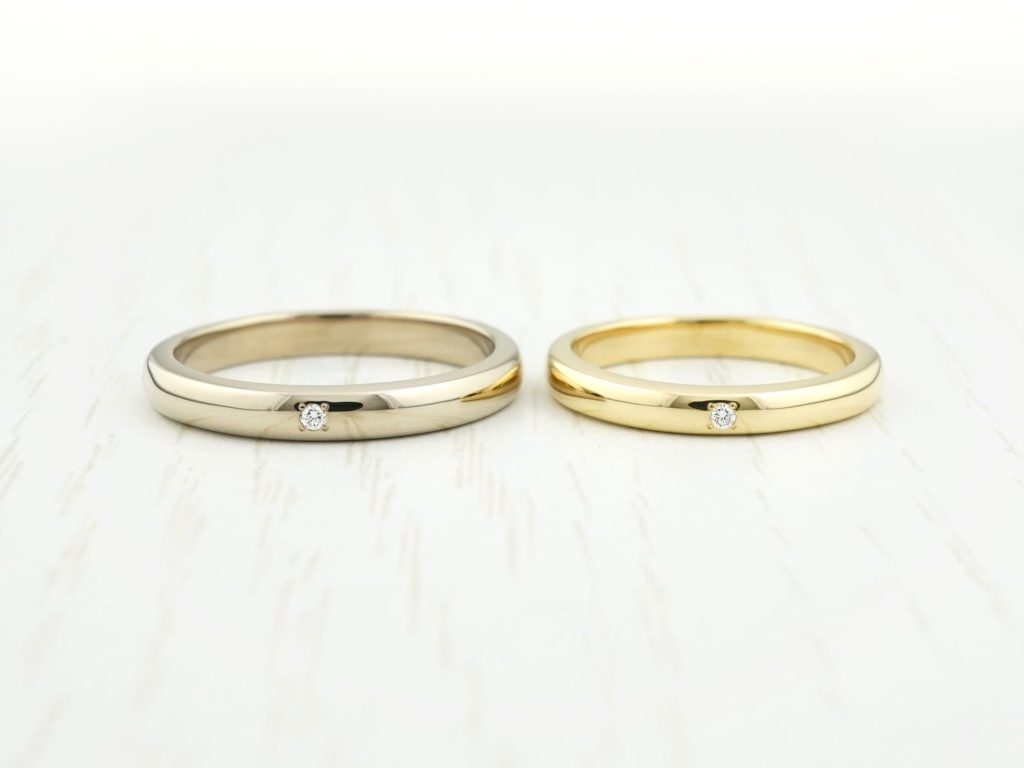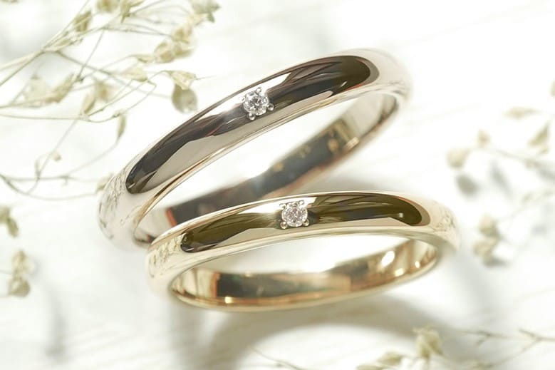 指輪の中央にはおふたりともダイヤモンドを留めて