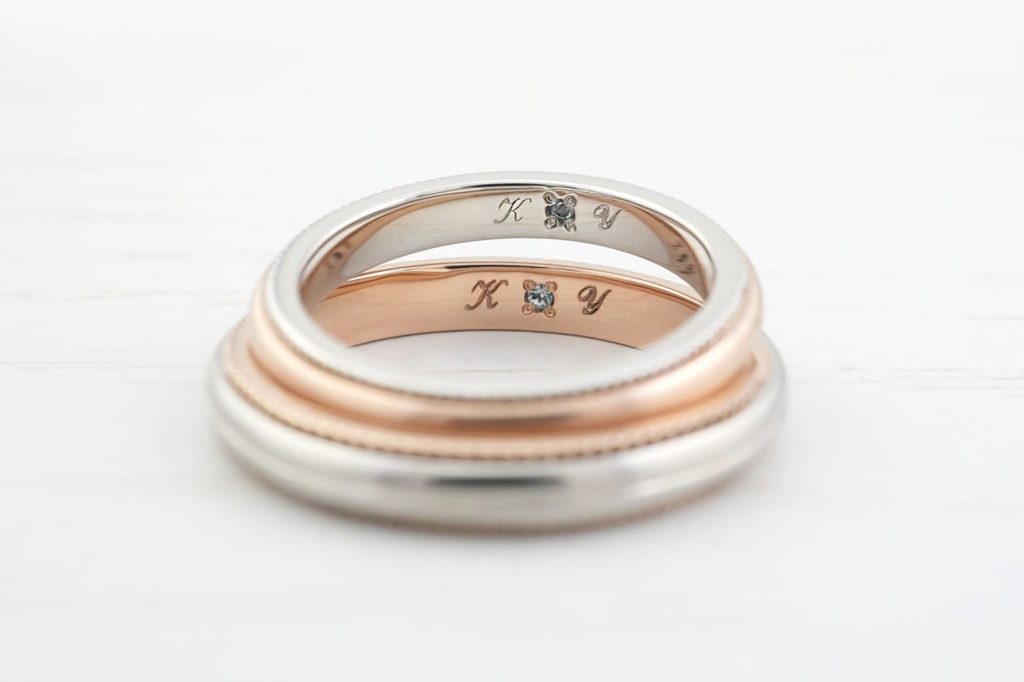 内側にはおふたりのイニシャルがレーザー(筆記体)で