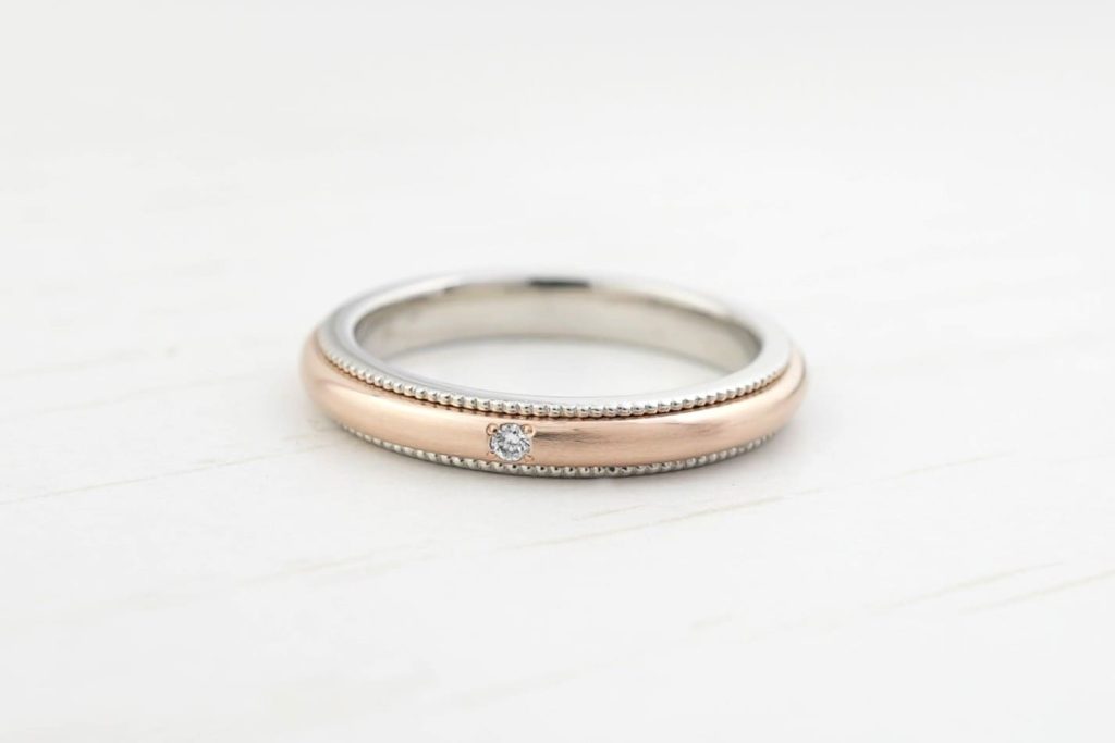 ミルグレイン枠はK18ピンクゴールドを使用し、