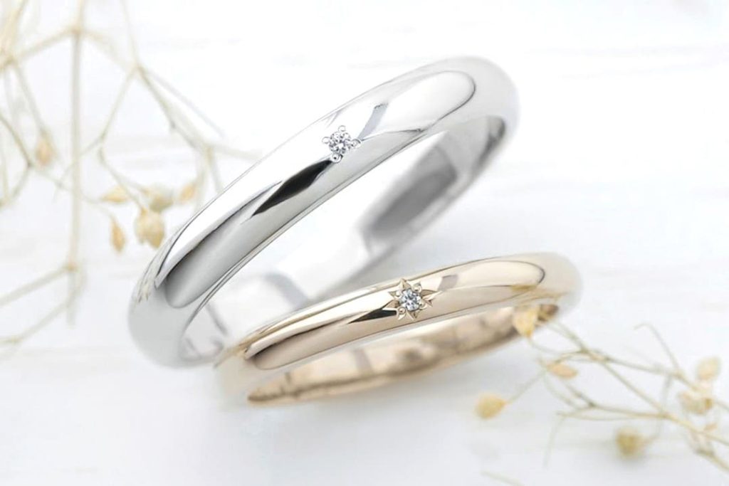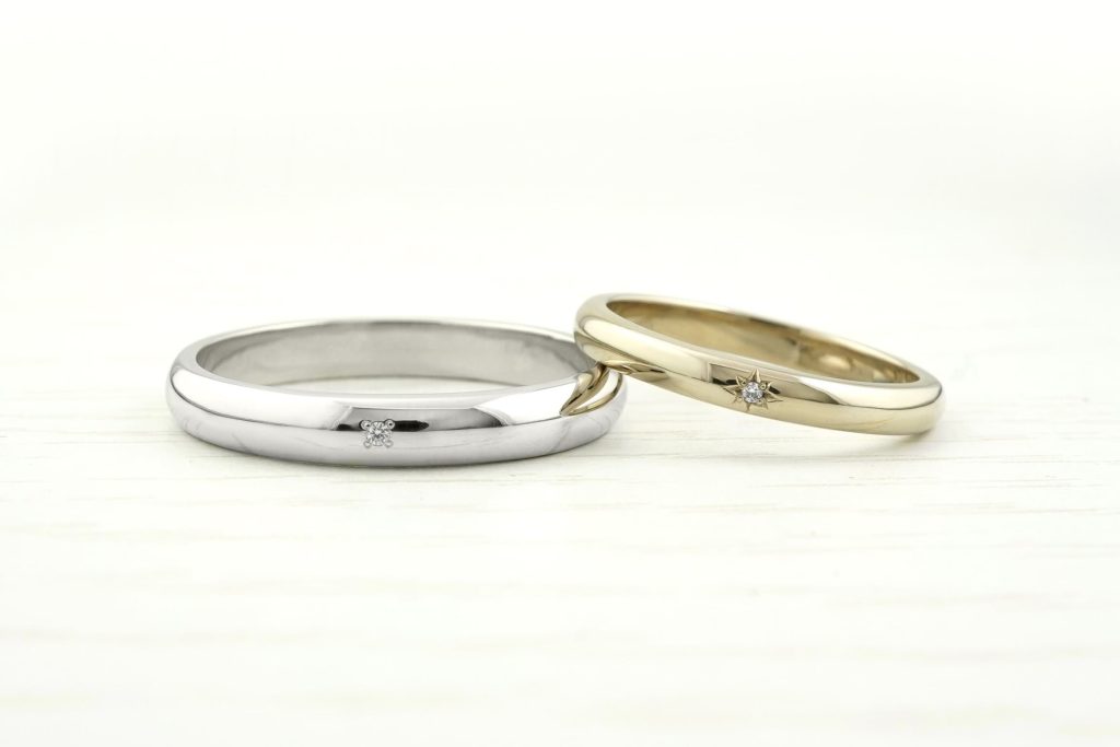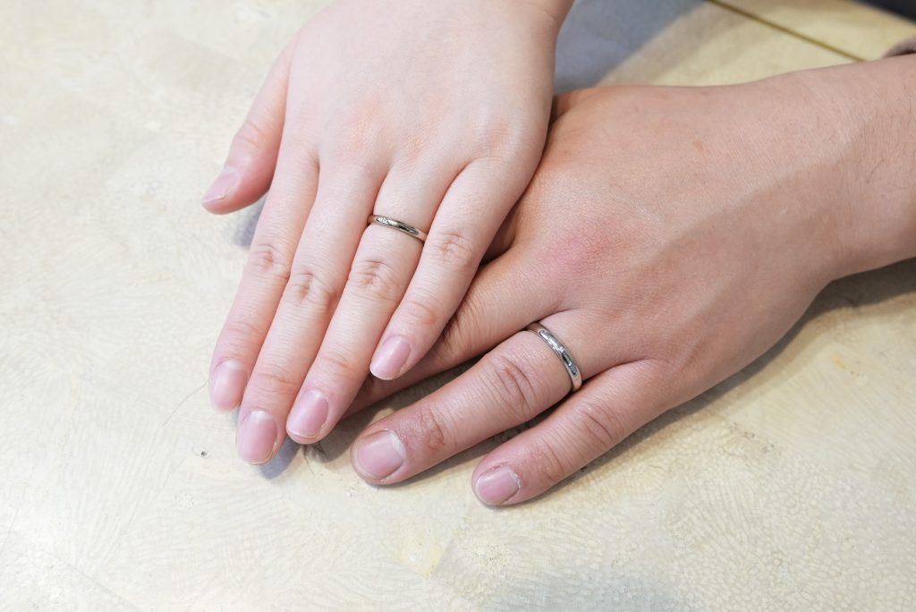 おふたりとも角をとり丸いフォルムの甲丸リングを