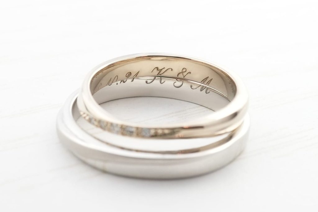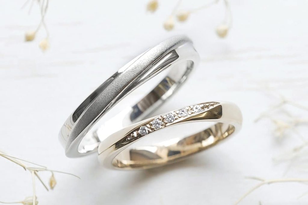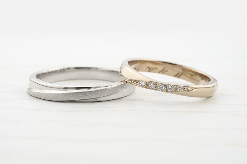 レディースリング(画像右)はK18シャンパンゴールド素材