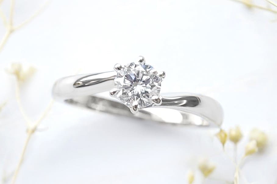 ダイヤモンドを支えるデザインの手作り婚約指輪