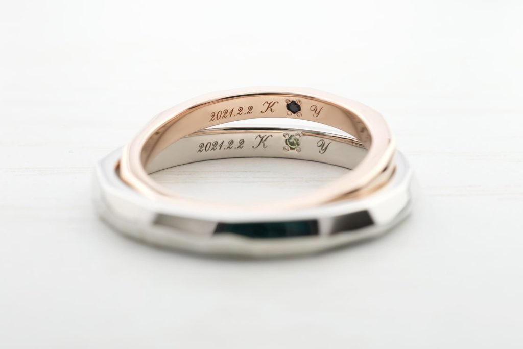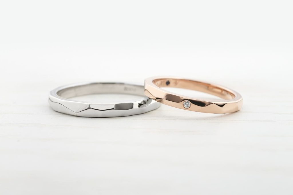 おふたりともヤスリで削った槌目模様の結婚指輪