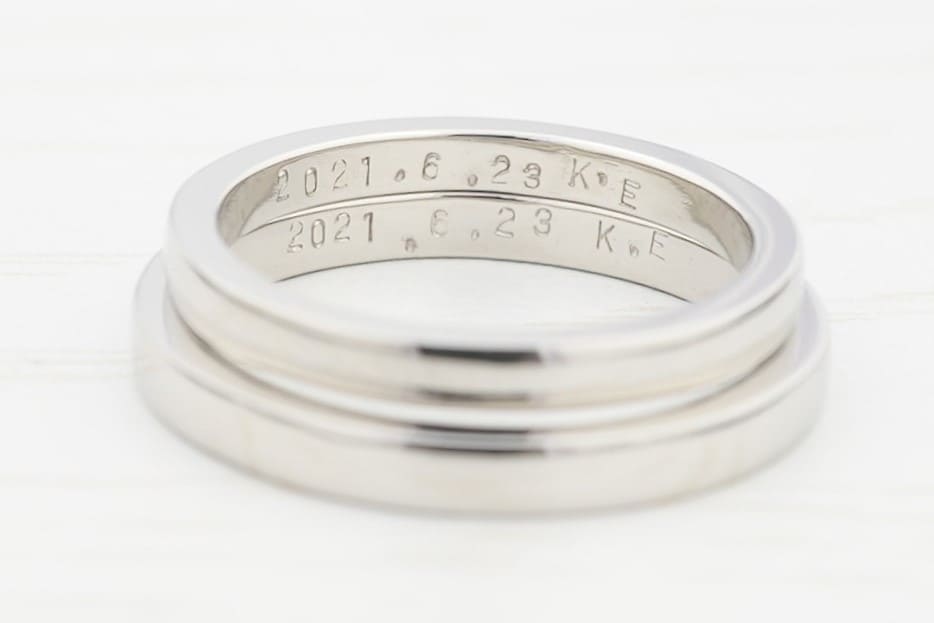 指輪の内側には打刻にておふたりのイニシャルと記念日が