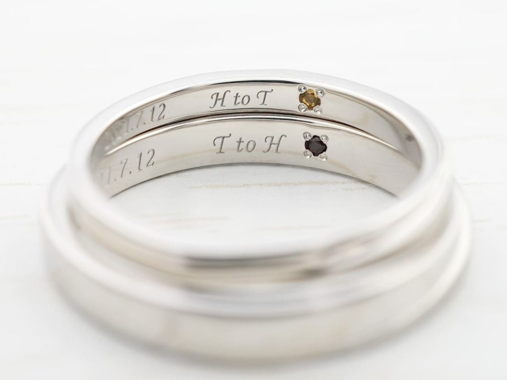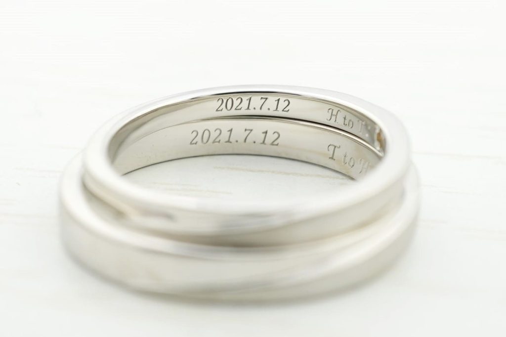 指輪の内側には、おふたりの記念日、イニシャルが